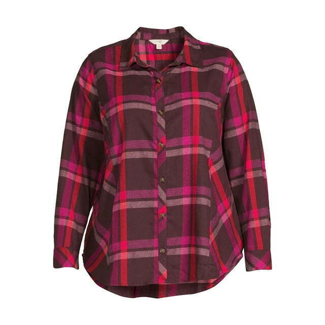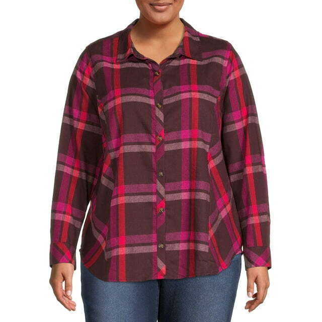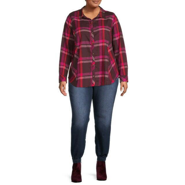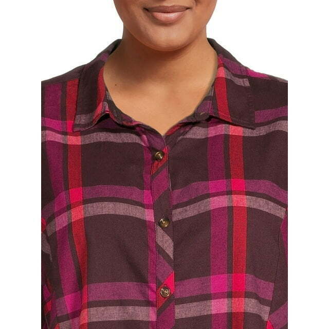 Terra & Sky Women's Plus Size Plaid Button-Down Shirt Size 4X (28W-30W)