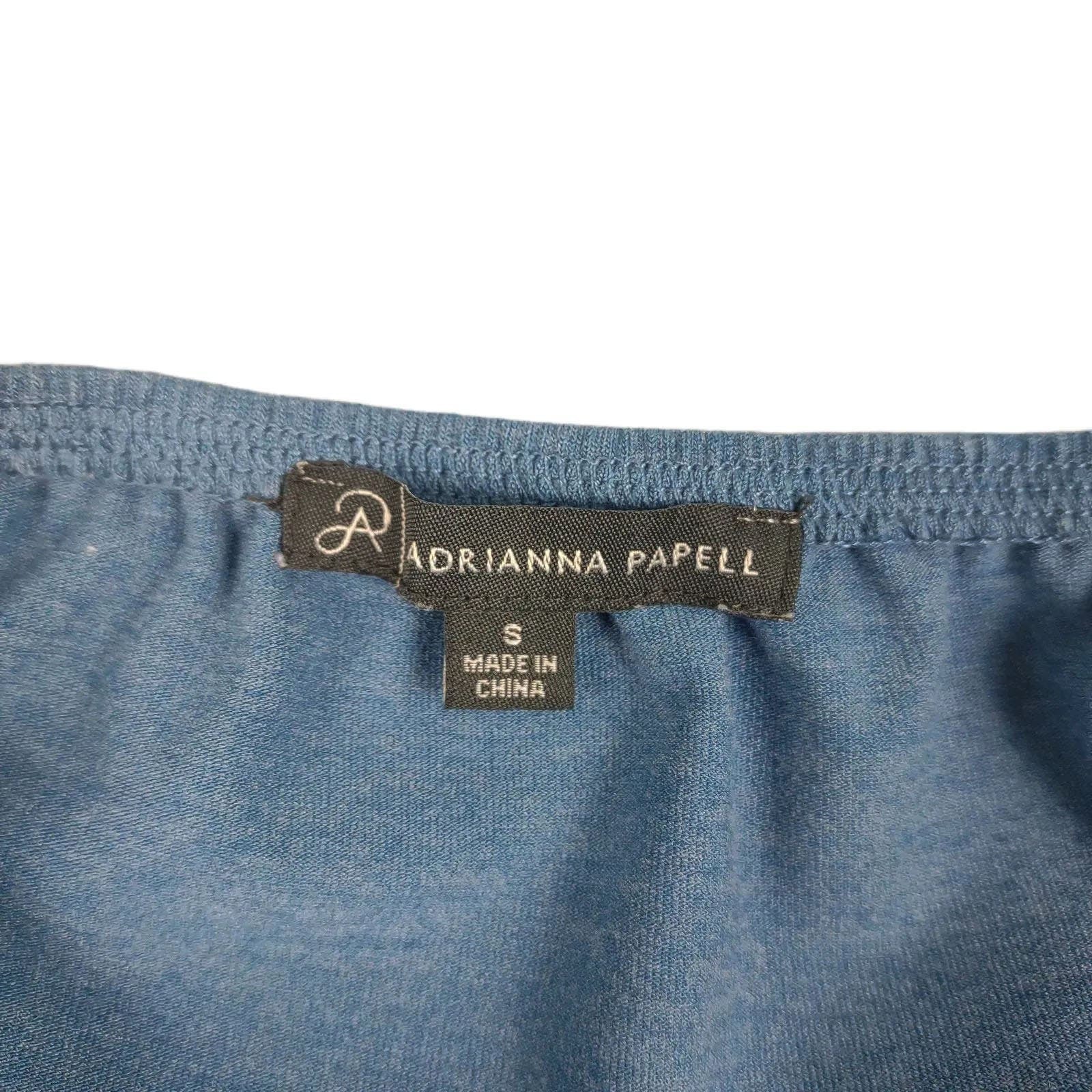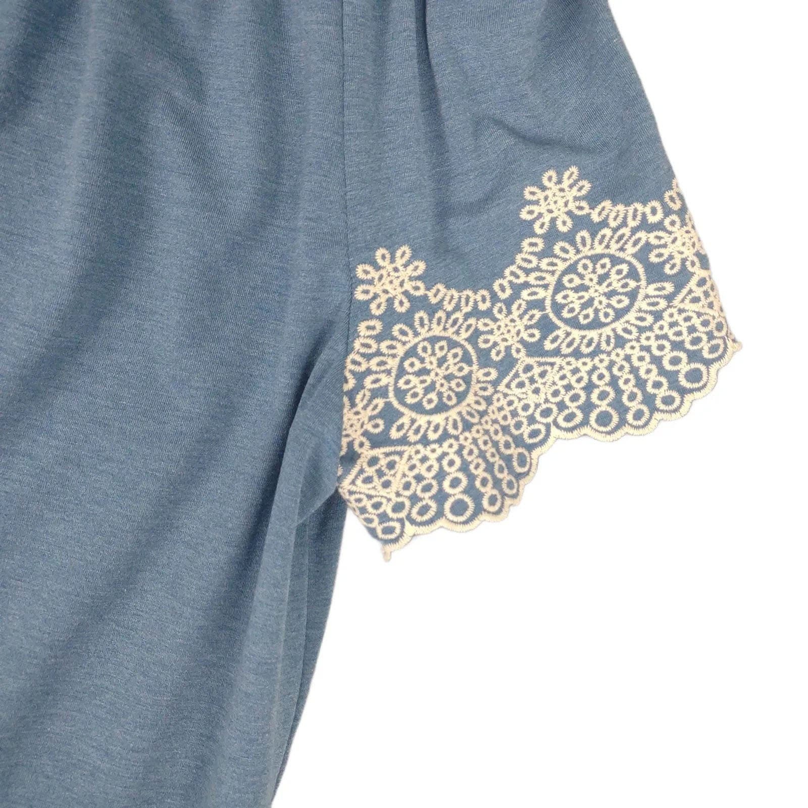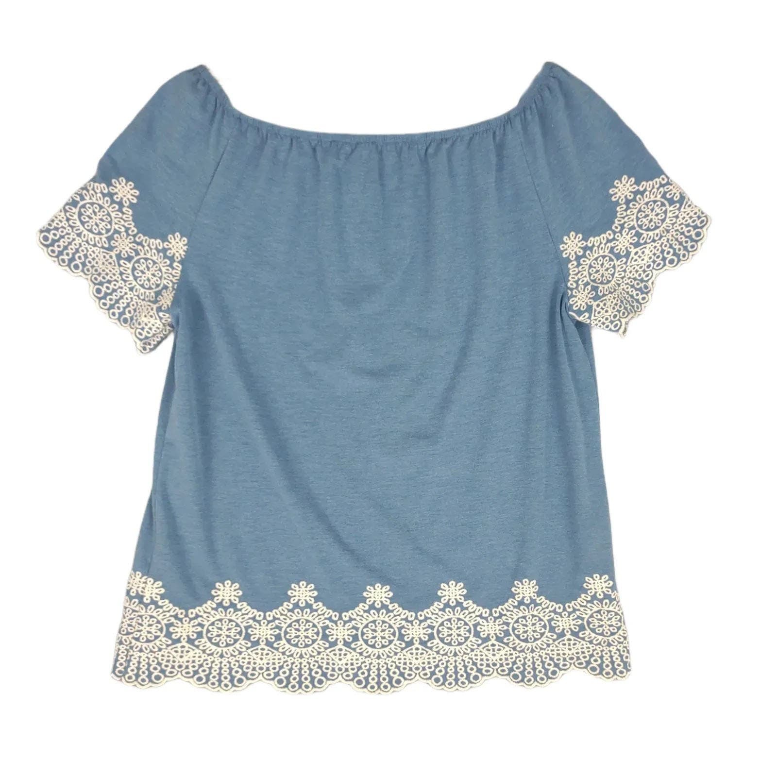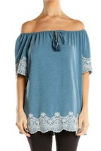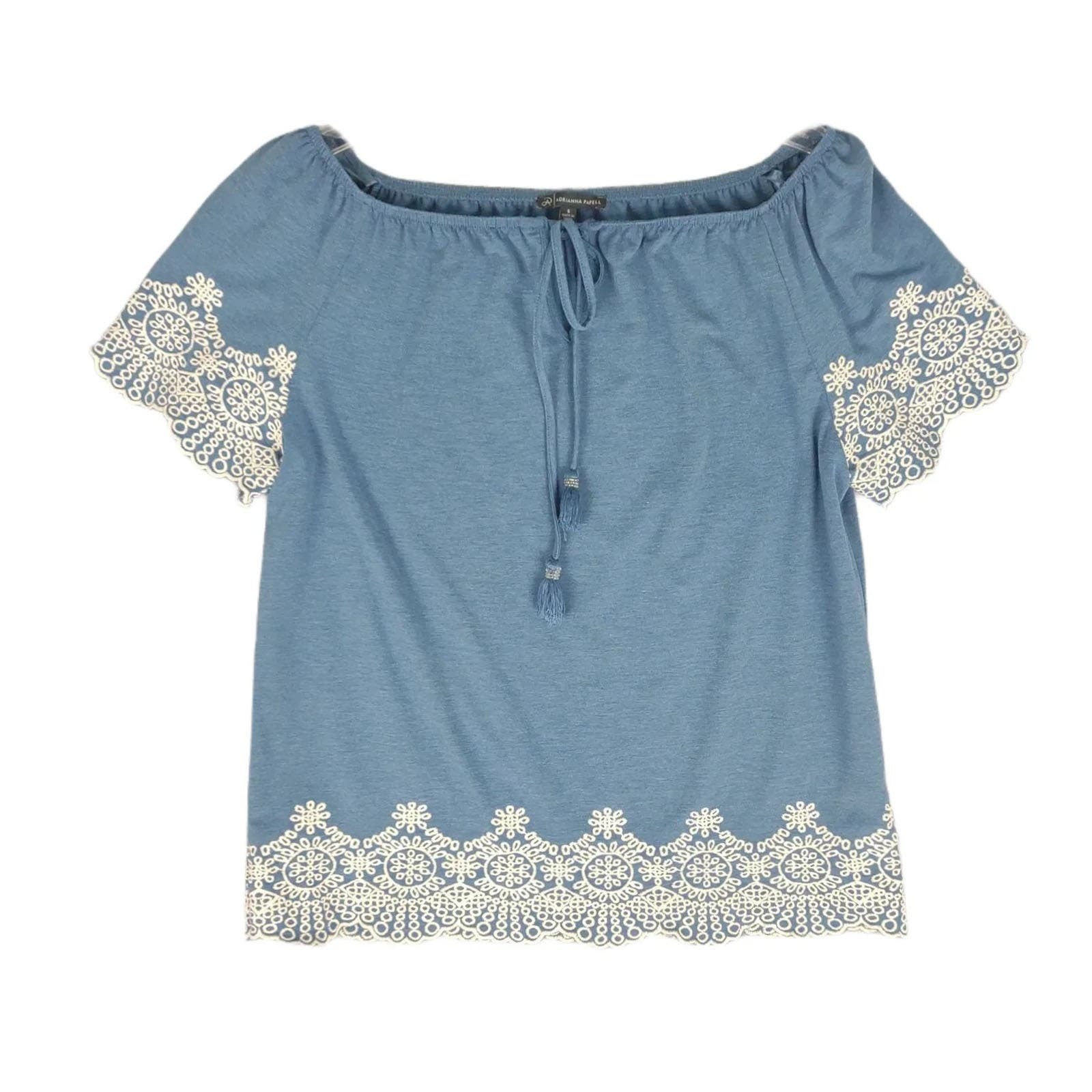 ADRIANNA PAPELL Women's S Embroidered Lace Trim Blue Off-Shoulder Blouse Top