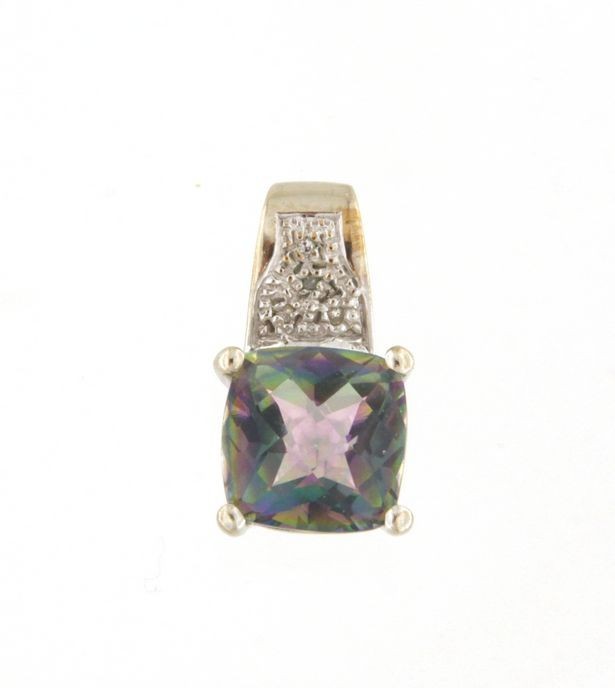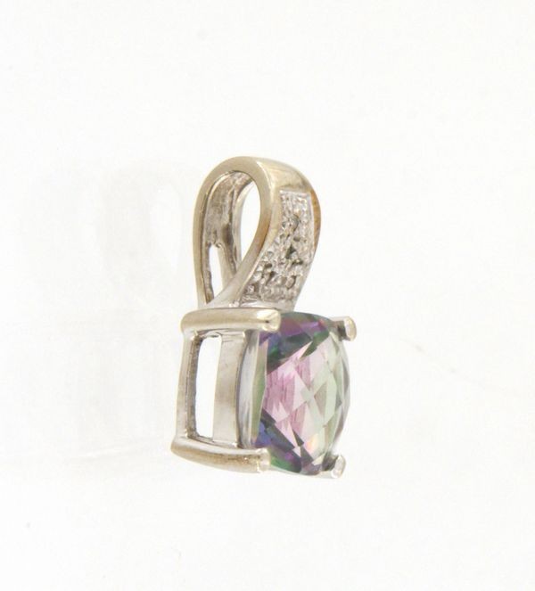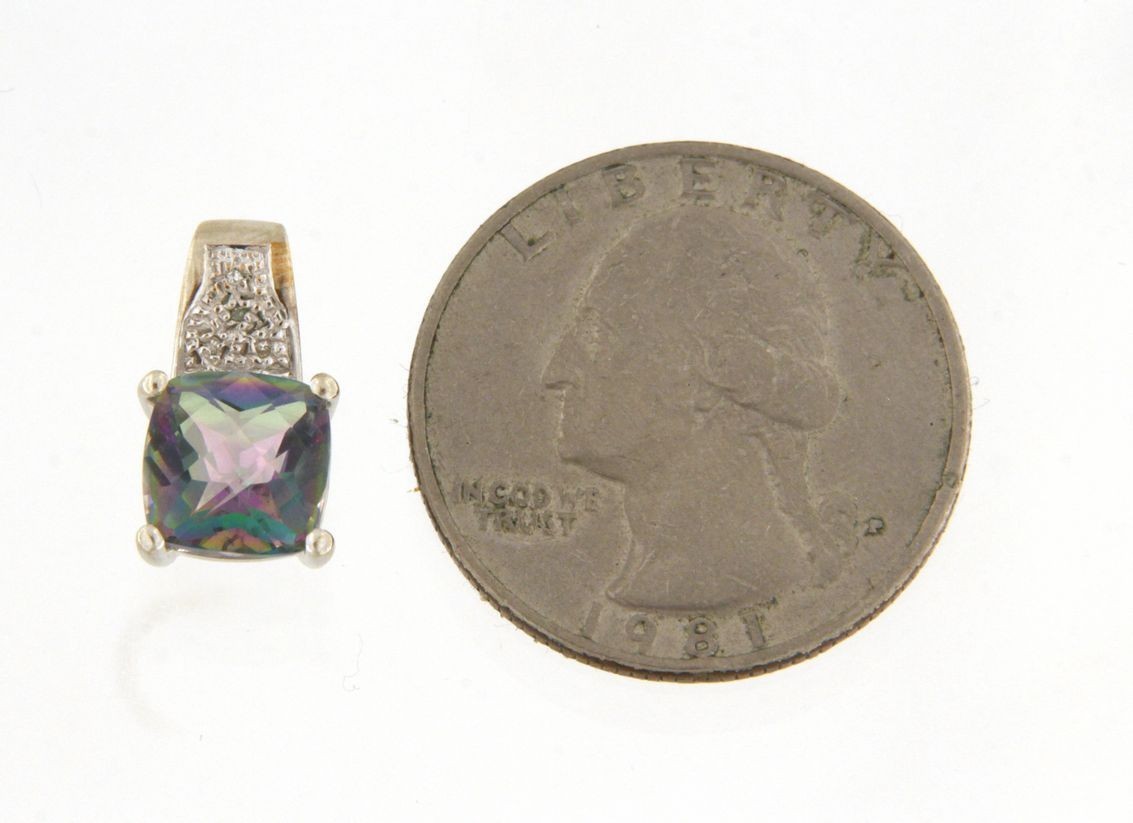 Type: CharmWeight: 1.1Karat: 14ktMetal: White GoldGender: Women'sStyle: ClusterSize / Length: 5/8"Owner applied: 14kStone 1 quantity: 1Stone 1 shape: PrincessStone 1 color: MultiStone 2 Quantity: 4Stone 2 Shape: RoundStone 2 Color: ClearBrand: 3Width: TopazThickness: .04Condition:Used