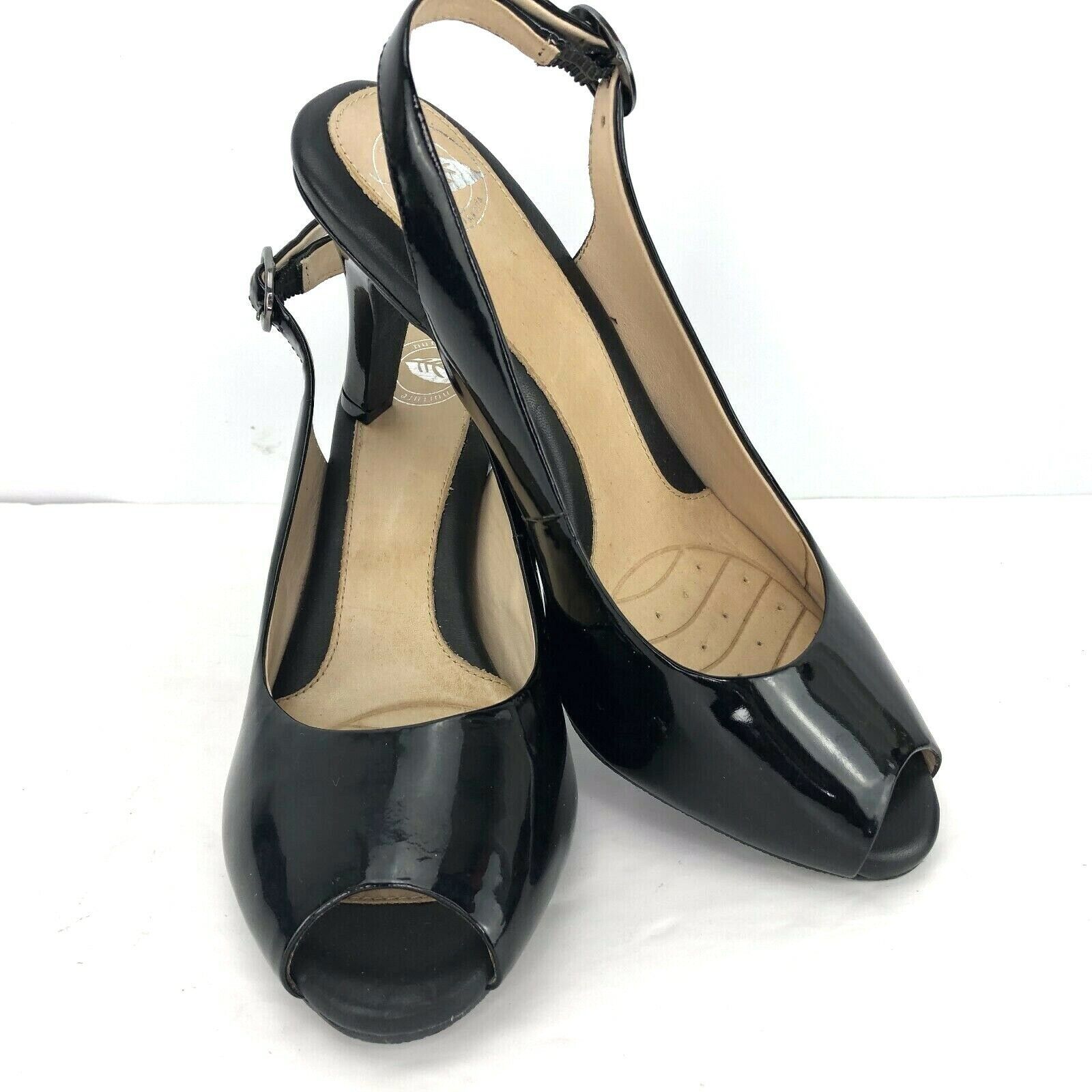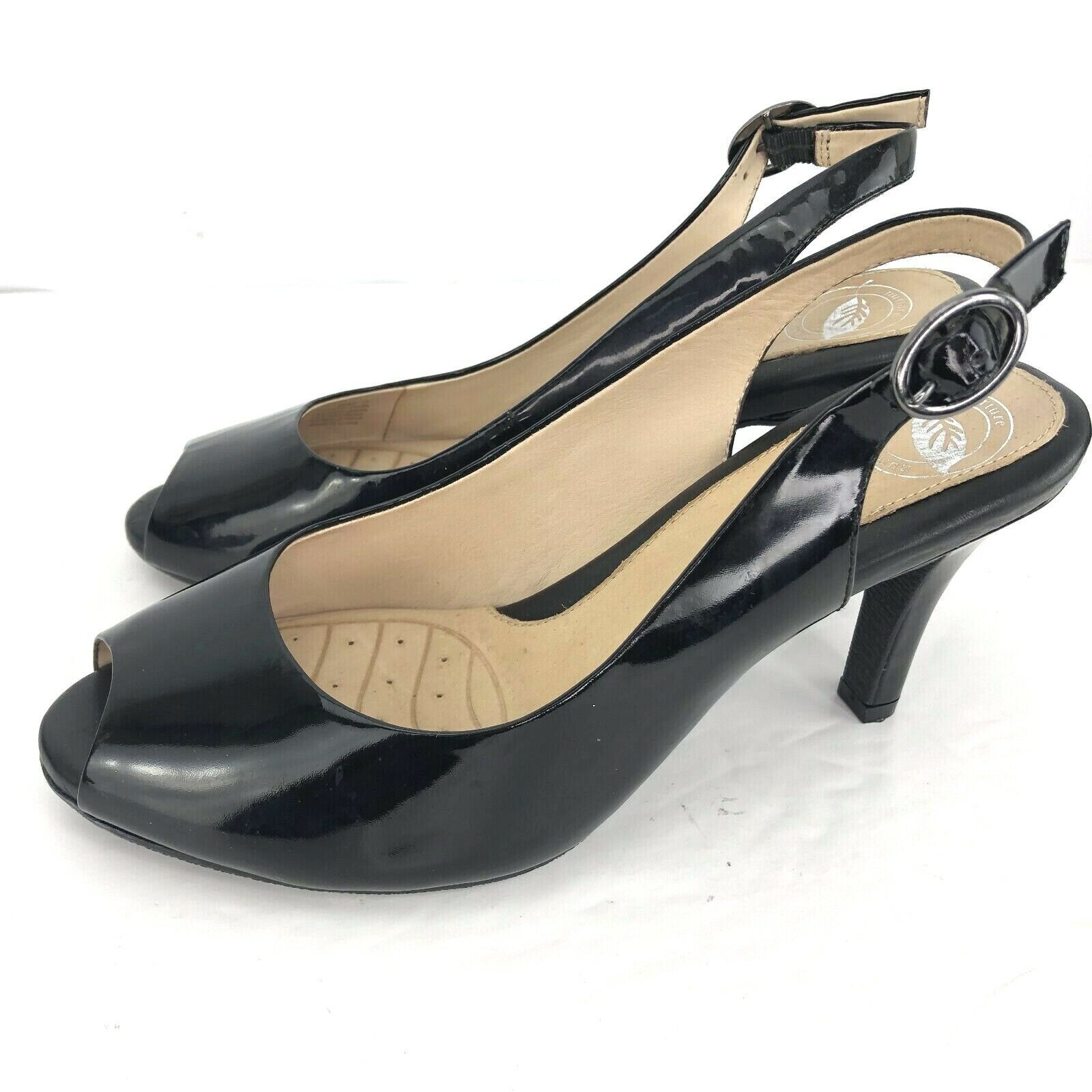 Nurture Sling Back Pump 6 M Black Patent Leather Peep Toe Heels Shoe