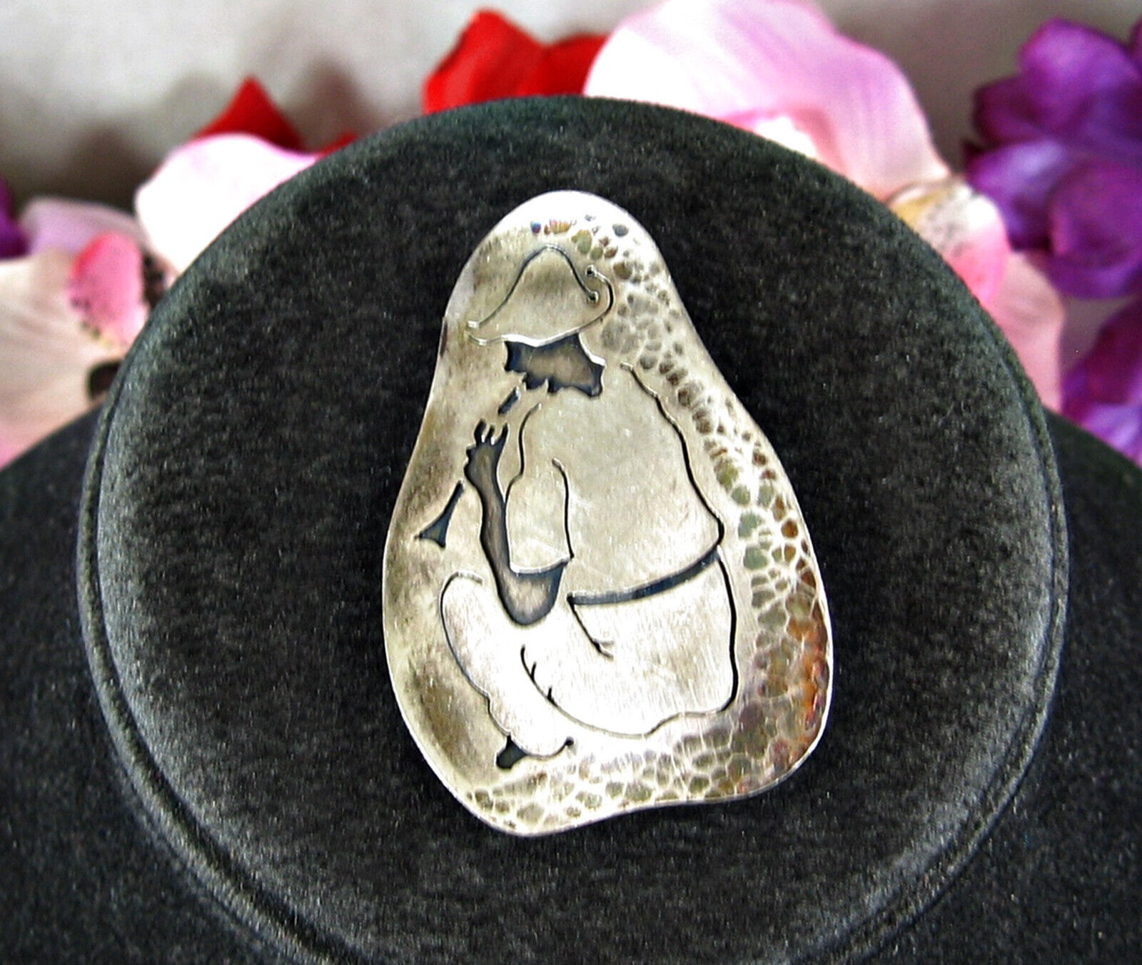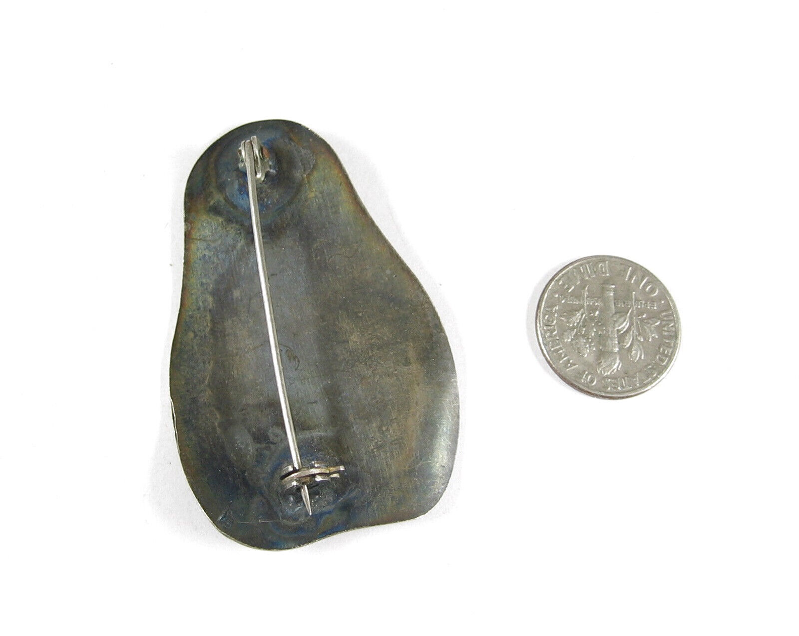 CONDITION: This piece of jewelry is in pre-owned and vintage used condition. The back of the pin shows a small marking on the edge. It is not marked as silver but the metal does test positive for silver. The clasp is in full working order. There is scratching, tarnish and finish wear present.
