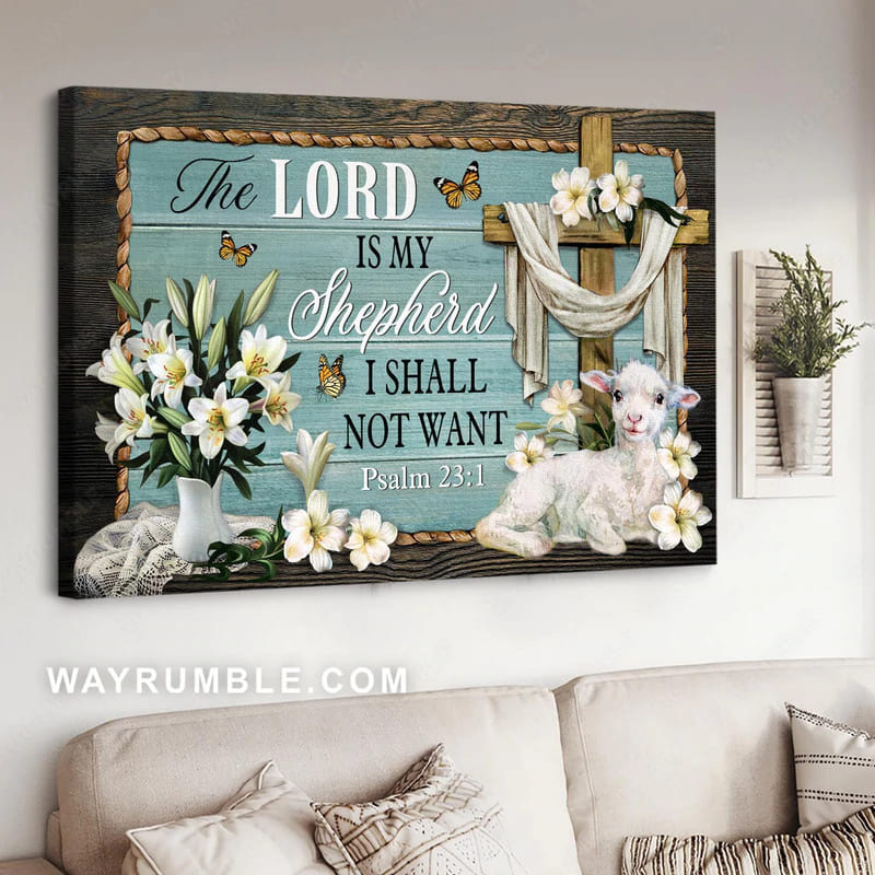 The Lord Is My Shepher I Shall Not Want Lamb Poster God Cross 1