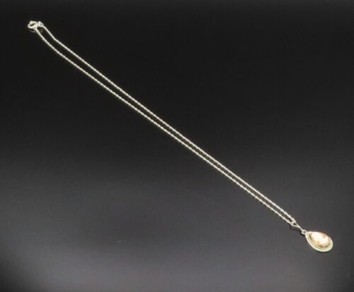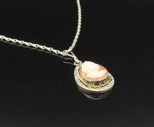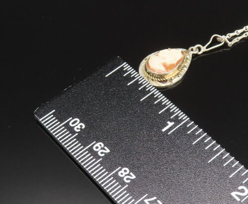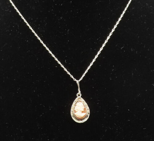 925 Silver - Vintage Marcasite & Rope Border Carved Lady Cameo Necklace - NE3914