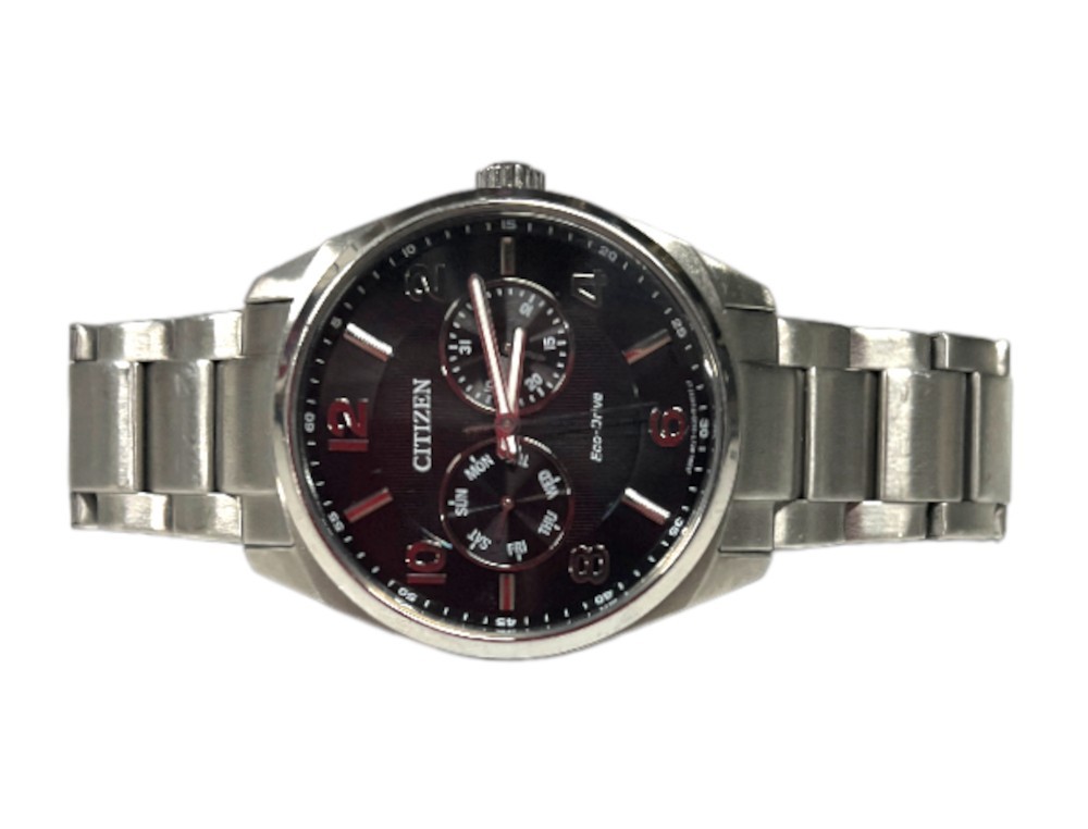Type: Wrist watchBrand: CitizenModel number: AO9020-84EModel name: CorsoCase width: 44mmWeight: 89.1Bracelet length: 9"Movement type: Quartz (Battery)Case Material: Stainless SteelBox included: noPaperwork included: noRunning: yesDial color: BlackCondition:Used