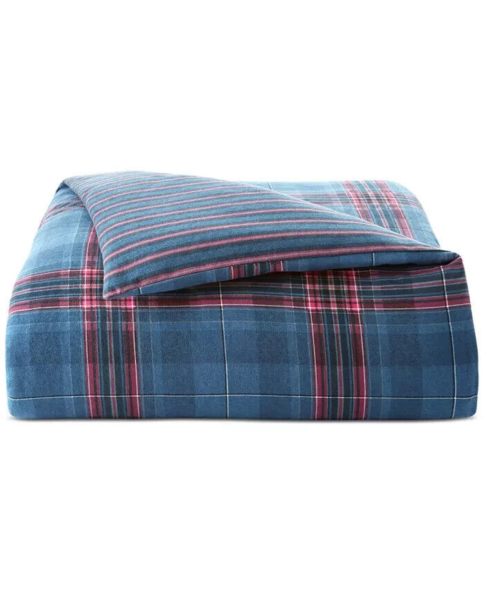 CHARTER CLUB Navy Plaid Flannel Duvet Cover Set, Full/Queen