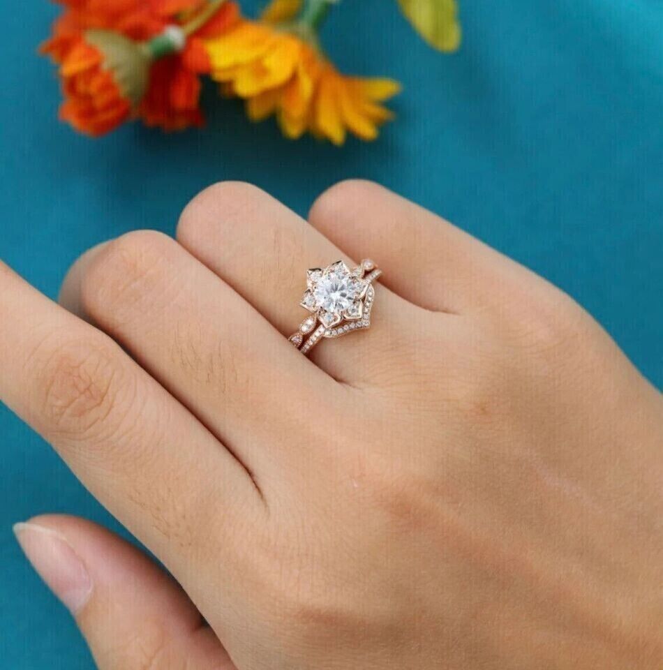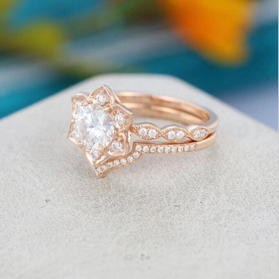 2Ct Round Cut Lab-Created Diamond Women Bridal Ring Set 14k Rose Gold Plated