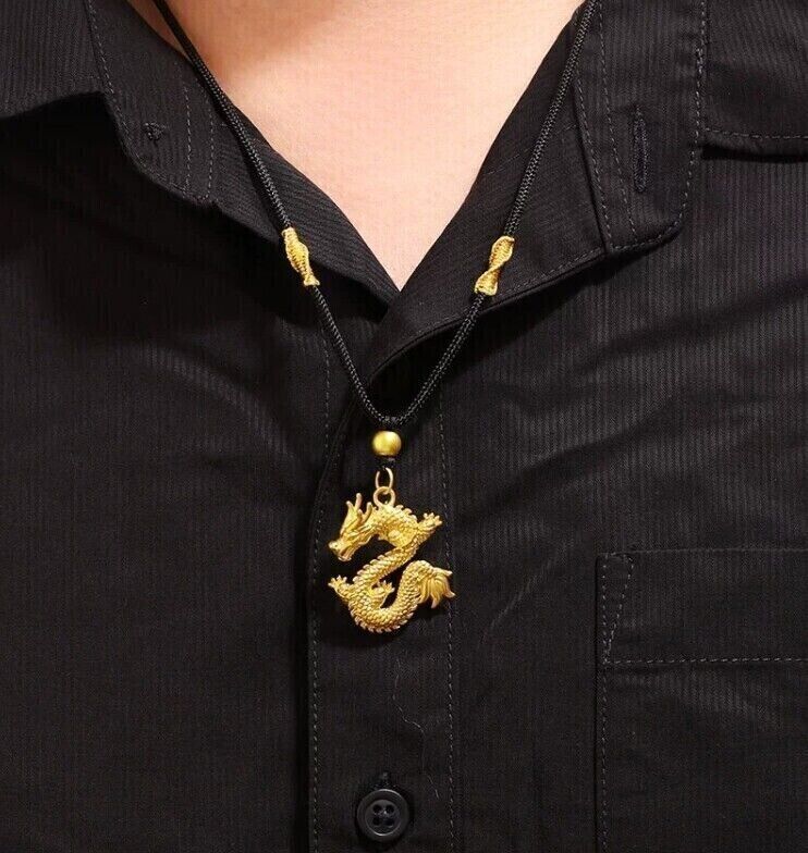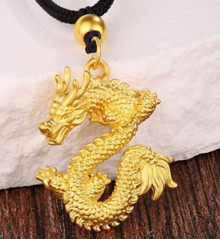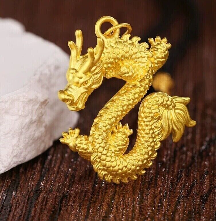 Dragon Unisex Lucky Charm Pendant 925 Sterling Silver 14k Yellow Gold Plated