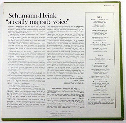 Product description: Ernestine Schumann-Heink, Wolfgang Amadeus Mozart, George Frideric Handel, Christoph Willibald Gluck, Ritter von, Gaetano Donizetti, Giacomo Meyerbeer, Ambroise Thomas, Charles Gounod, Camille Saint-Sae?ns, Richard Wagner//Contents: La clemenza di Tito. Parto, parto / Mozart -- Rinaldo. Lascia ch'io pianga / Handel -- Orfeo ed Euridice. Ach, ich habe sie verloren / Gluck -- Lucrezia Borgia. Trinklied / Donizetti -- Le prophe?te. Ach mein Sohn ; O pre?tres de Baal / Meyerbeer -- Mignon. Kennst du das Land? / Thomas -- Sapho. O? ma lyre immortelle / Gounod -- Samson et Dalila. Der Fru?hling erwachte ; Mein Herz / Saint-Sae?ns -- Das Rheingold. Weiche, Wotan, weiche (with Herbert Witherspoon, bass) ; Rienzi. Gerechter Gott / Wagner.