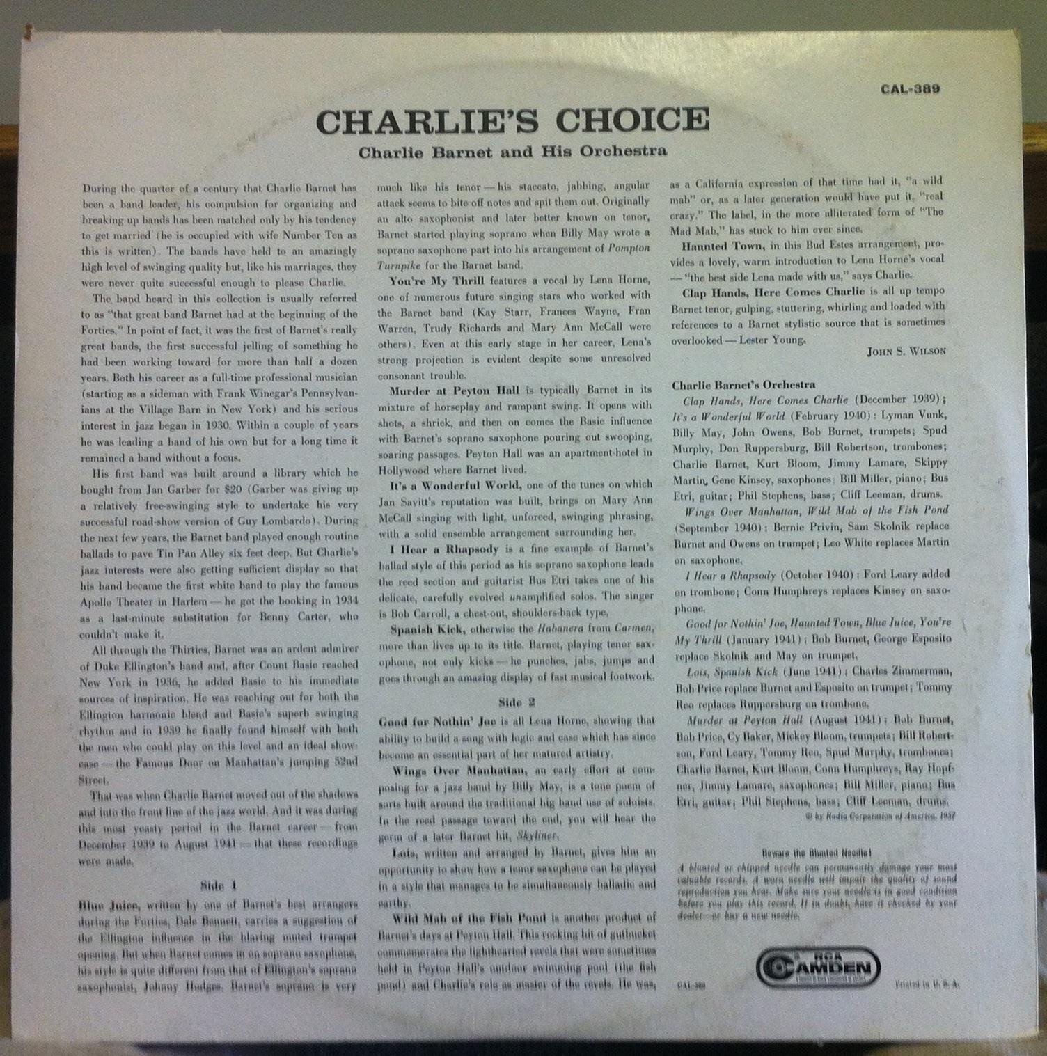 CHARLIE BARNET CHARLIE'S CHOICE vinyl record |