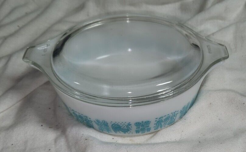 Vintage Pyrex Amish Butterprint Light Blue Small Casserole Dish W/Lid 470-C