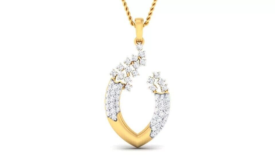 1.50Ct Round Cut lab-Created Diamond Women Unique Pendant 14k Yellow Gold Plated