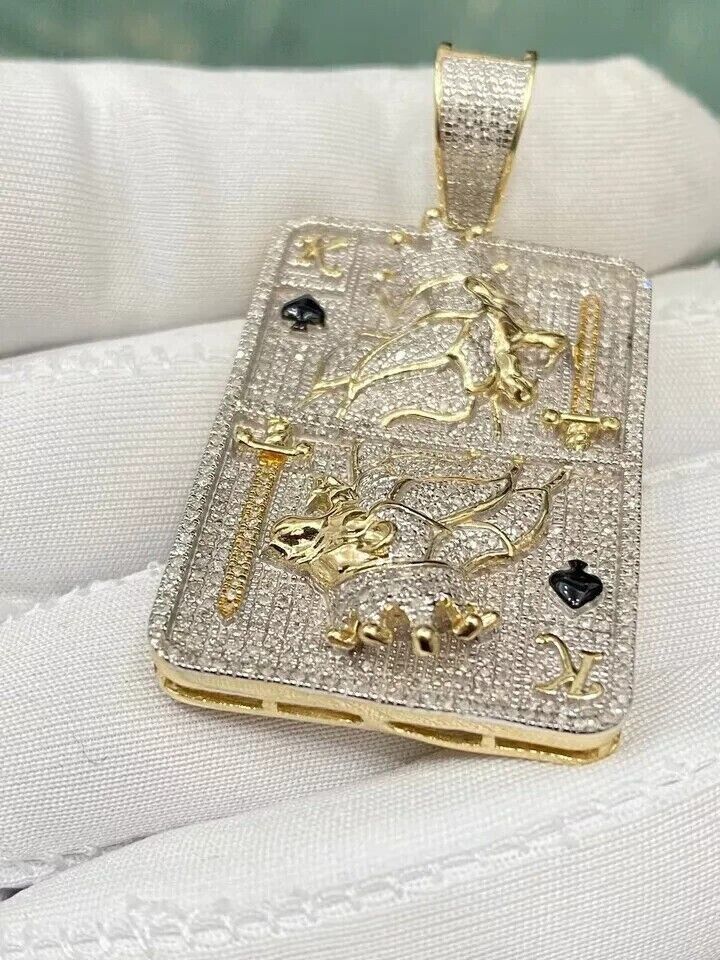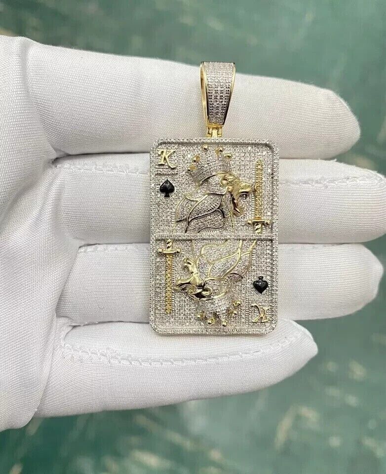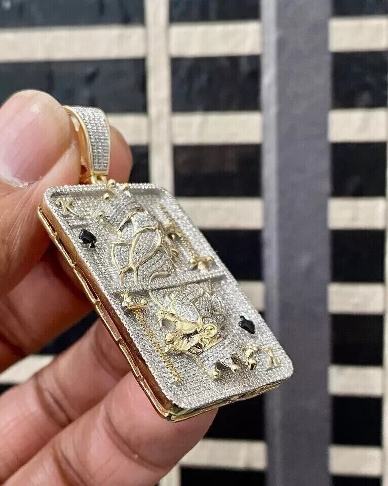 2Ct Round Lab-Created Diamond Poker Play Card Pendant 14k Yellow Gold Plated