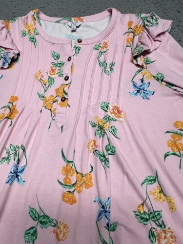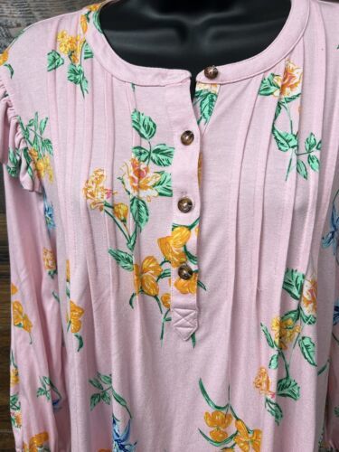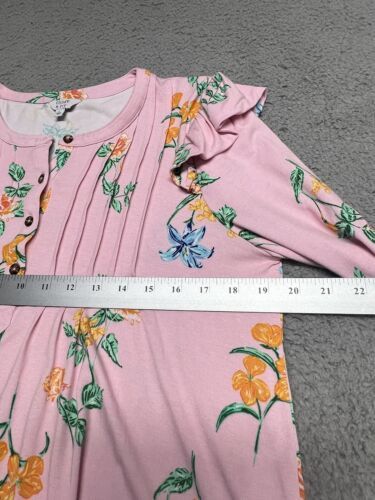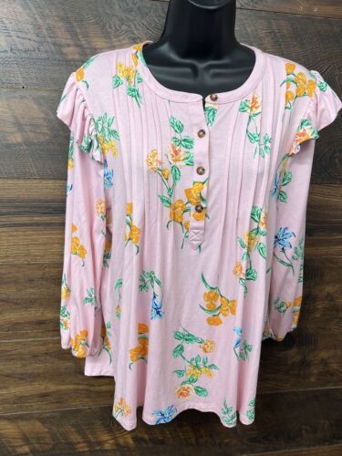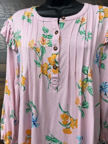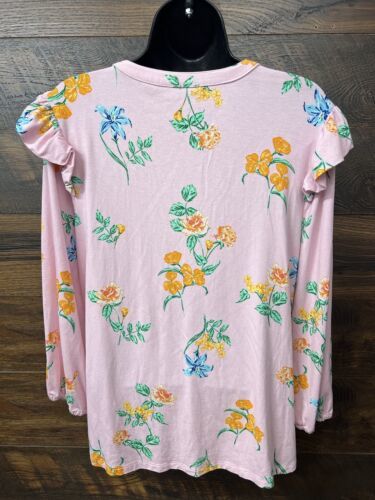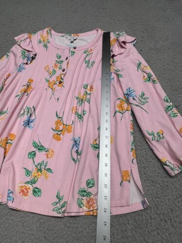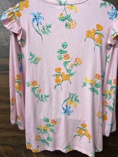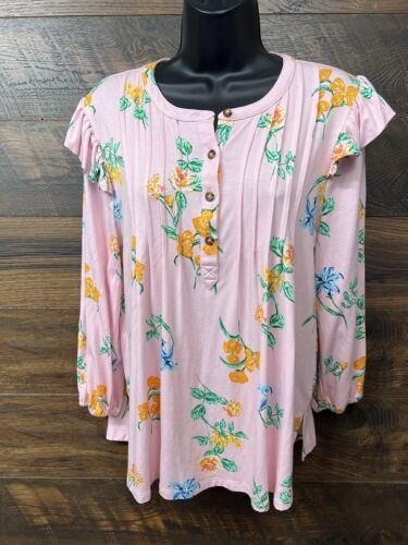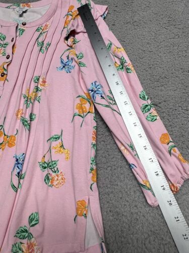 Crown & Ivy Top Shirt Women Size Large Pink Floral Ruffle Long Sleeve Buttons