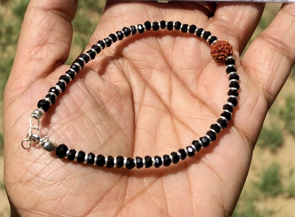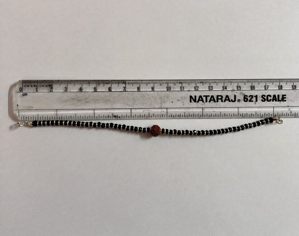 Realizzato in argento sterling 925 con perline nere e 5 mukhi rudraksha originali