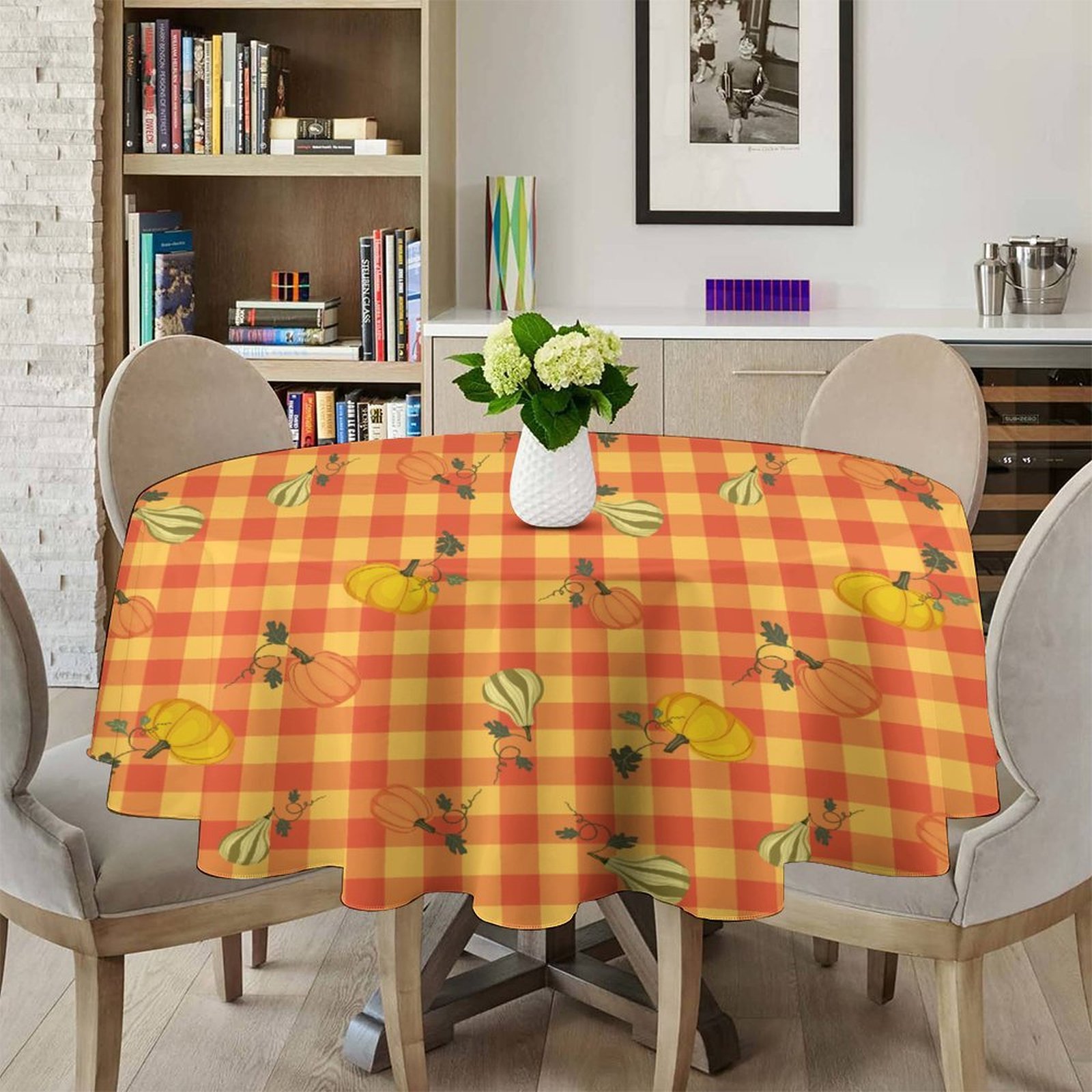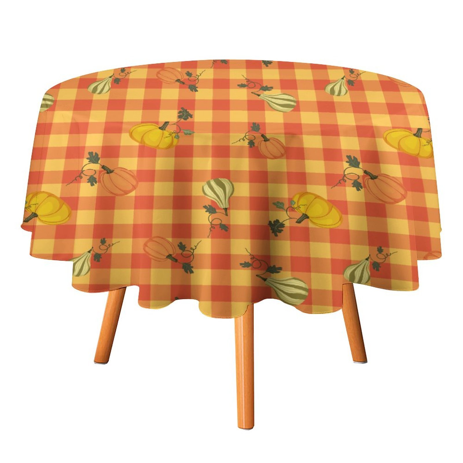 Orange Checkered Tablecloth Round Kitchen Dining for Table Cover Decor Home