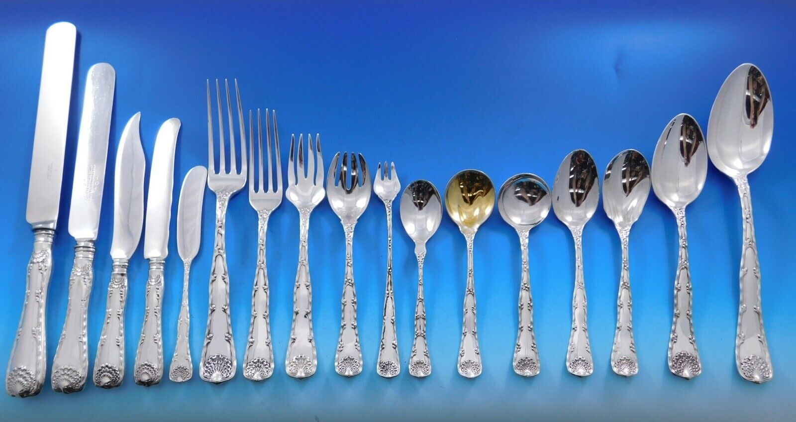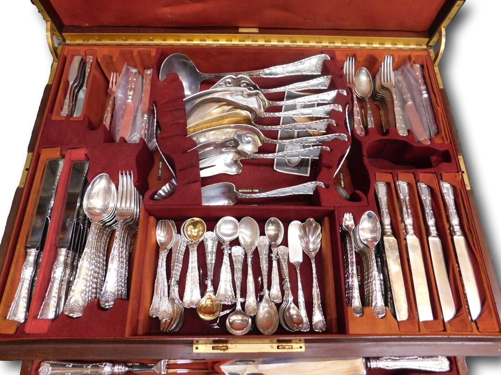 Outstanding Wave Edge by Tiffany Co. extensive sterling silver flatware service in large fitted Tiffany chest - 259 pieces. This service includes: