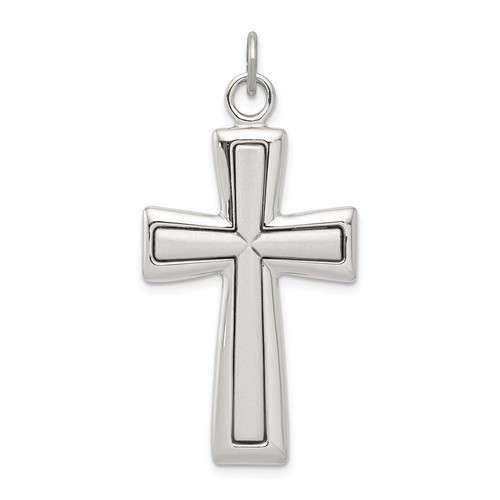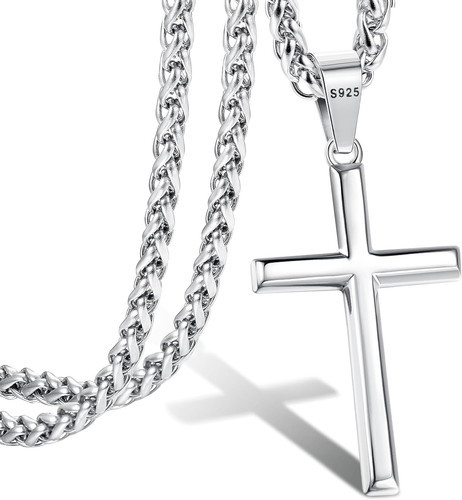 The featured Italian-made pendant is cast in .925 sterling silver and showcases a plain latin cross finished with a sturdy bail that can accommodate most average-sized chains.