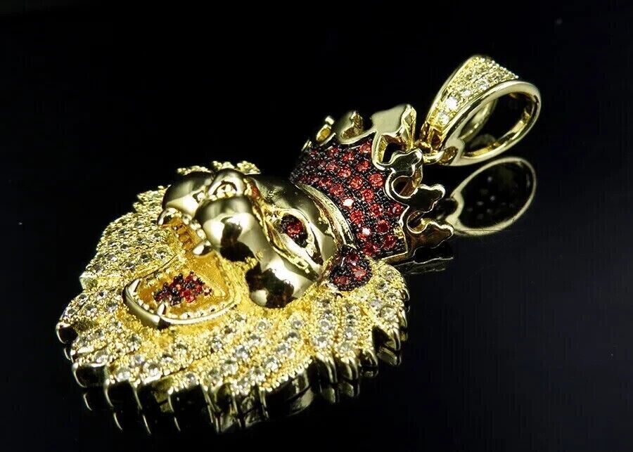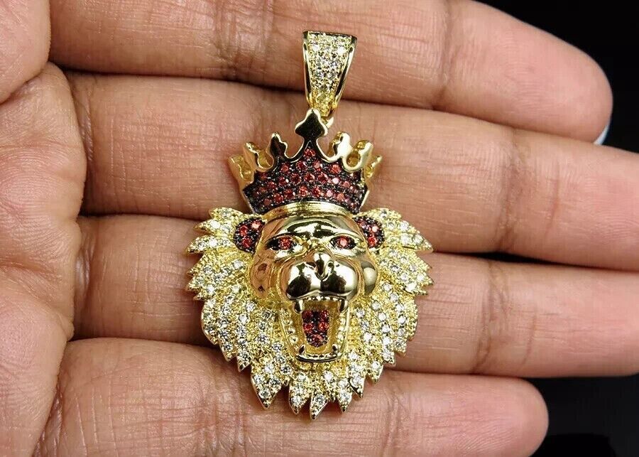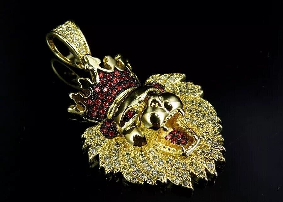 2Ct Round Cut Lab-Created Garnet Lion Head Face Pendant 14k Yellow Gold Plated