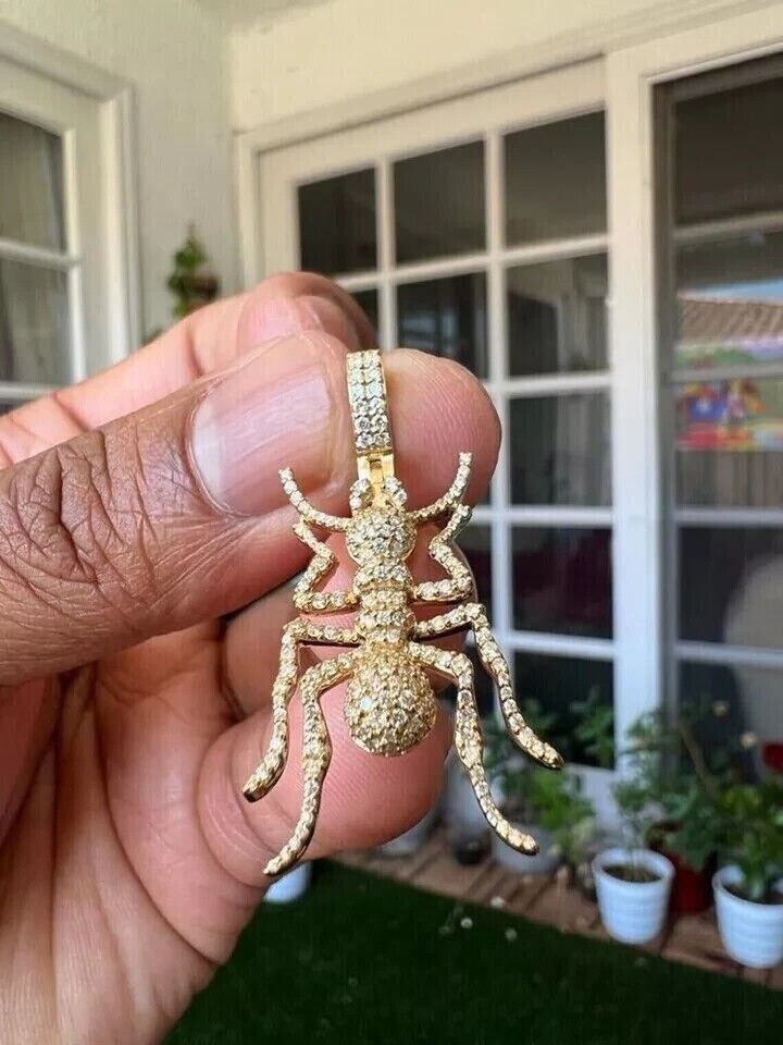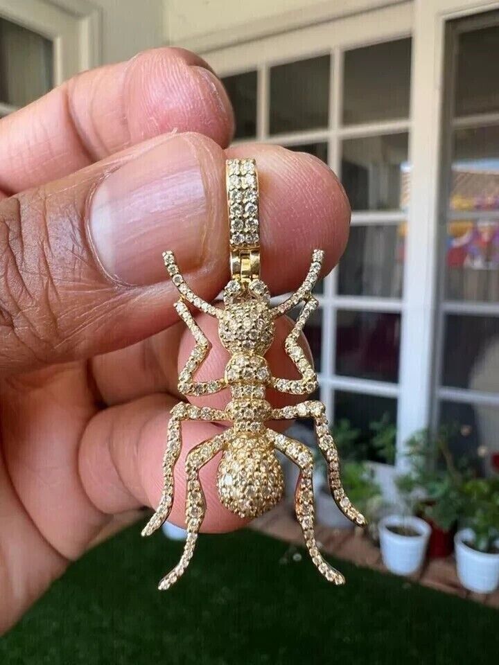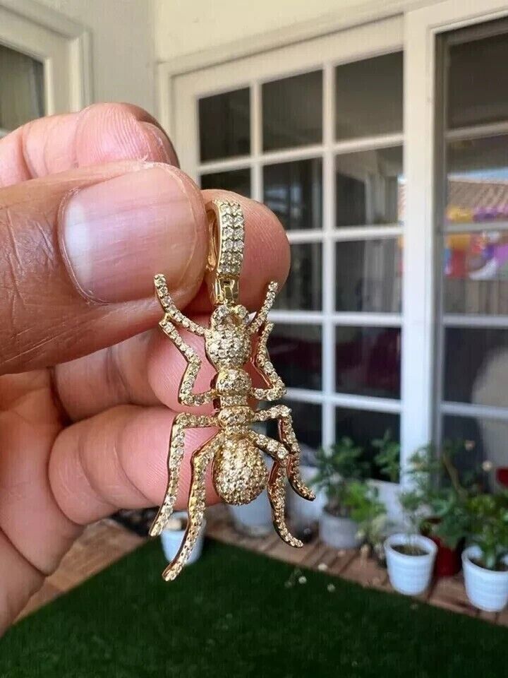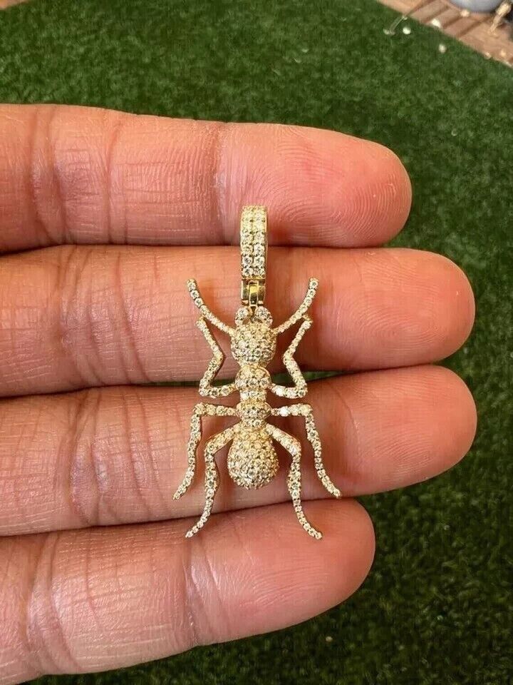1.50Ct Round Cut Lab Created Diamond "ANT" Charm Pendant 14K Yellow Gold Plated