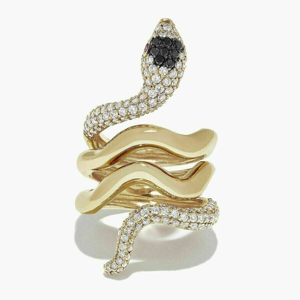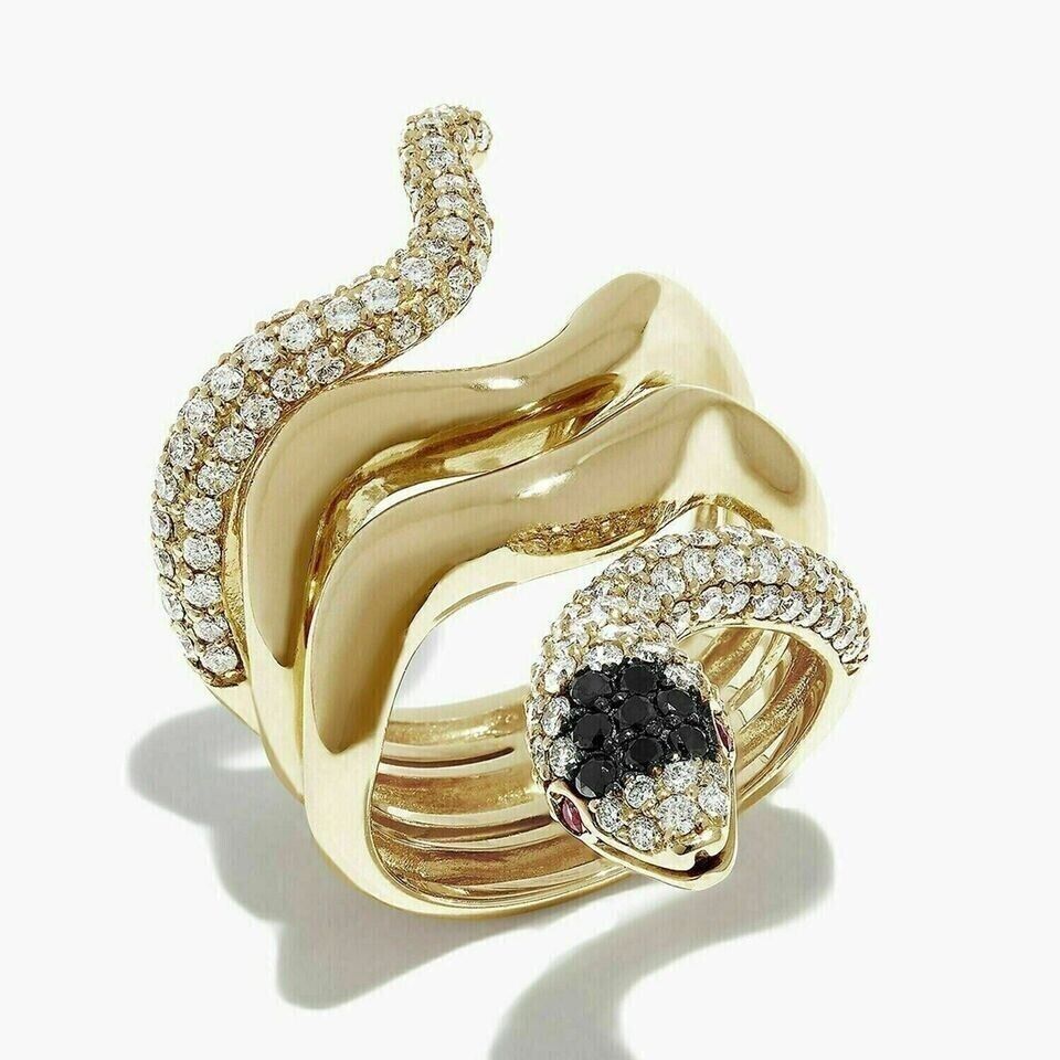 1.50Ct Round Cut Lab-Created Diamond Unisex Snake Ring 14k Yellow Gold Plated