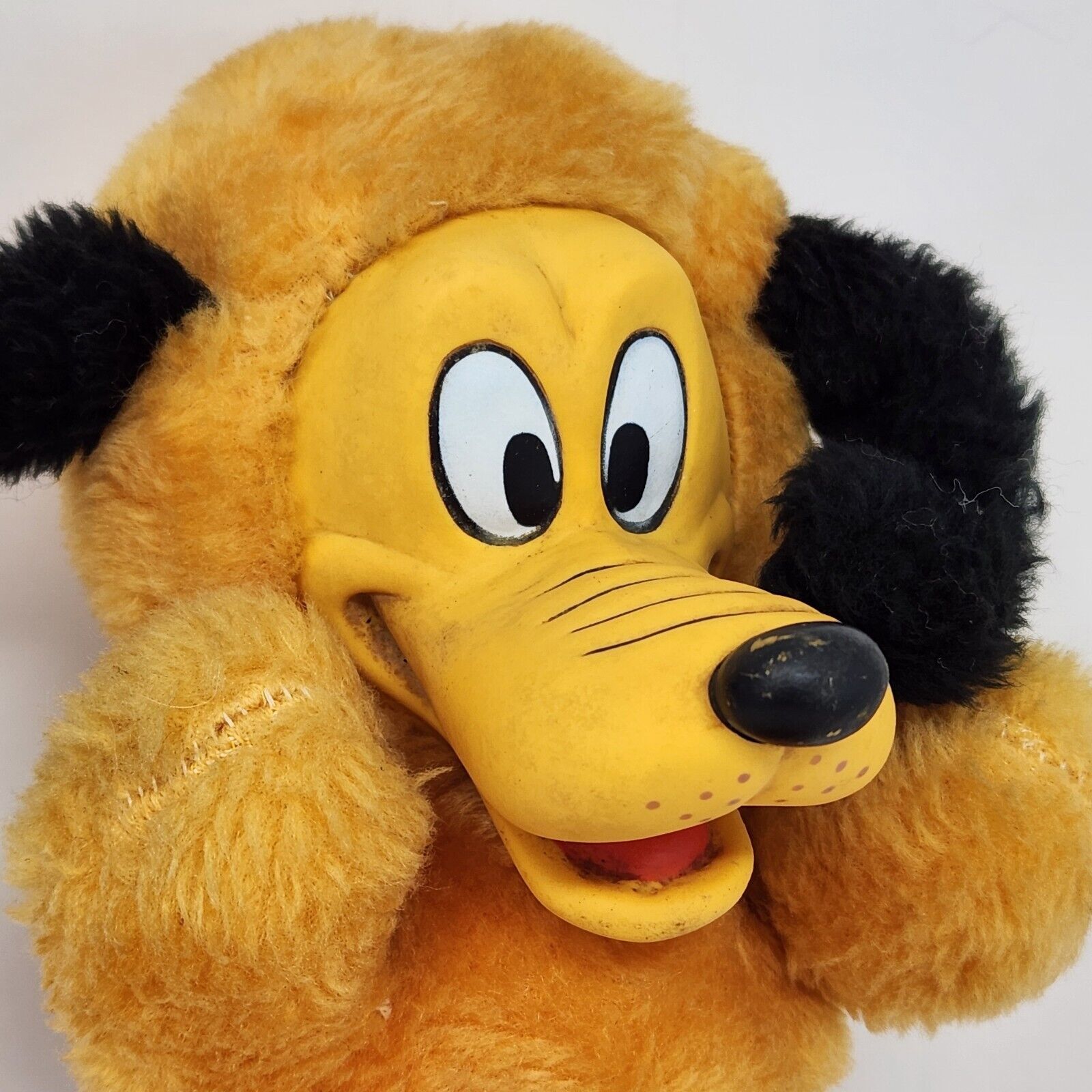 12" VINTAGE DISNEY RUBBER FACE PLUTO PUPPY DOG STUFFED ANIMAL PLUSH TOY JAPAN