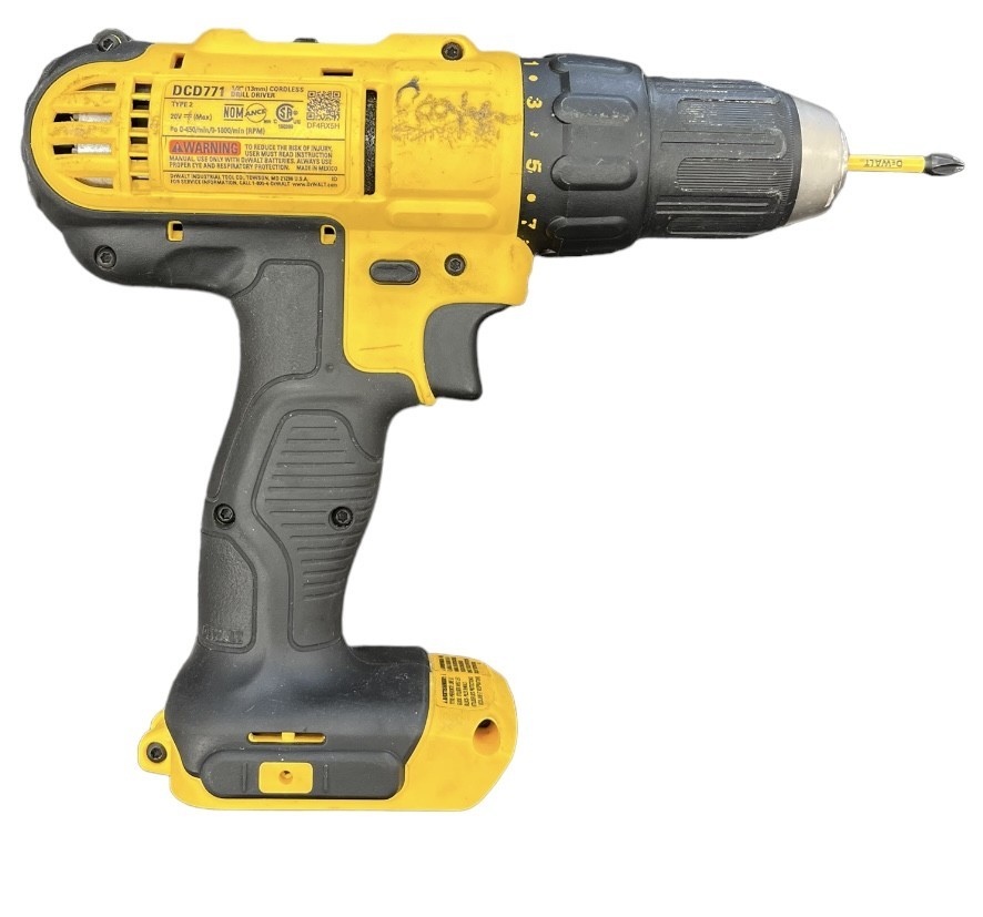 Category: Cordless hand toolsType: DrillBrand: DewaltModel number: DCD771Model name: Drill DriverSize: 1/2"Color: Yellow / BlackPower source: BatteryBattery Included: noCase included: noCharger Included: noVoltage: 20Condition:Used