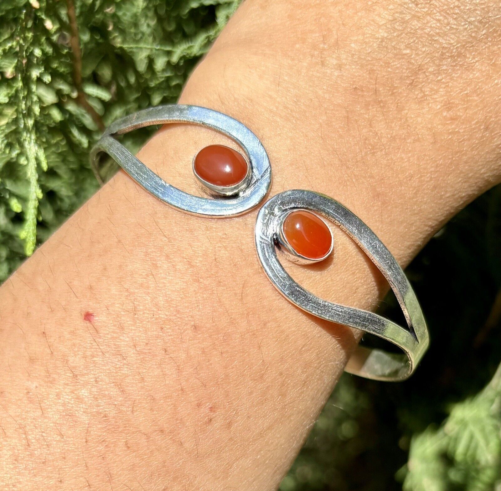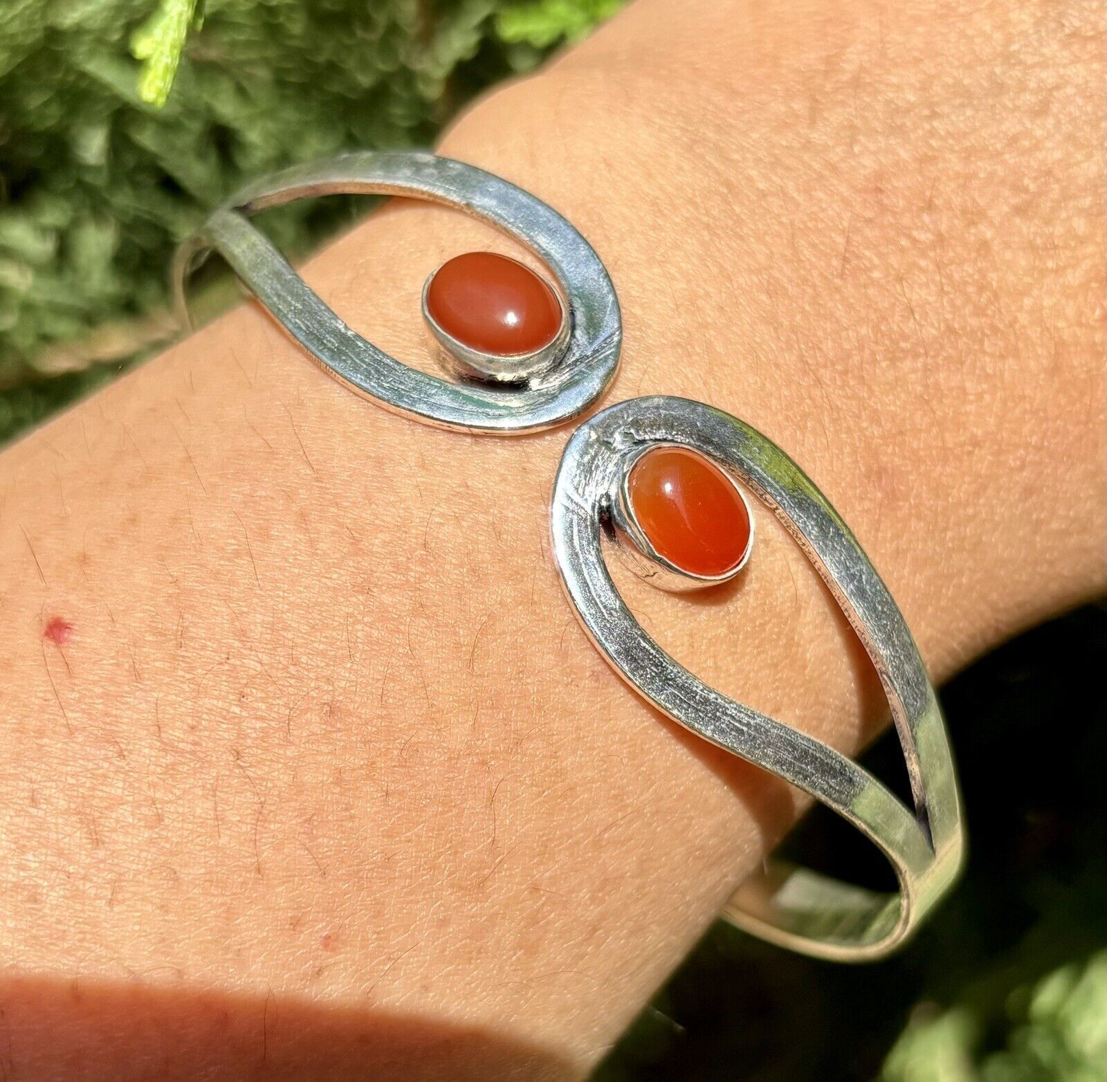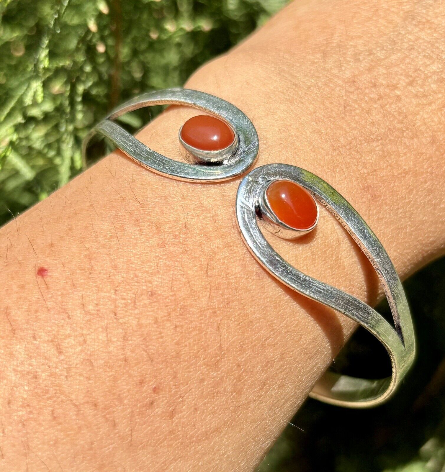 925 Sterling Versilberter natürlicher KARNELISCHER Manschettenarmreif,...