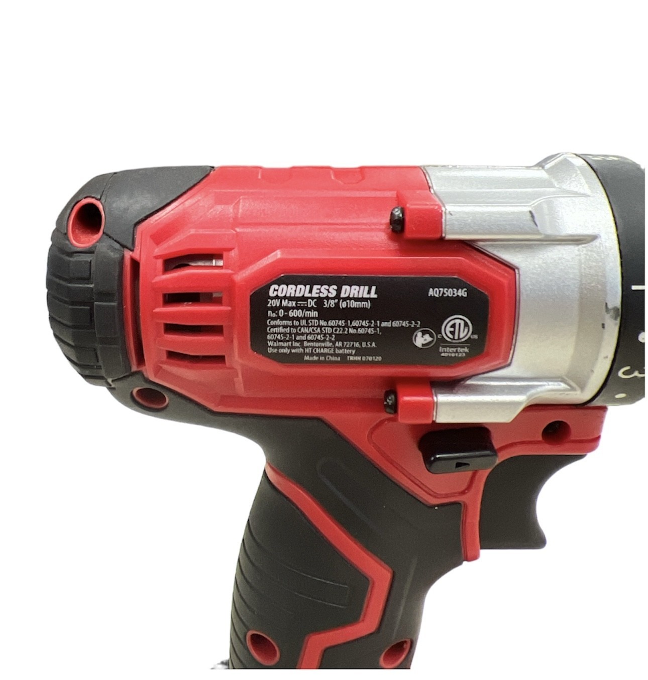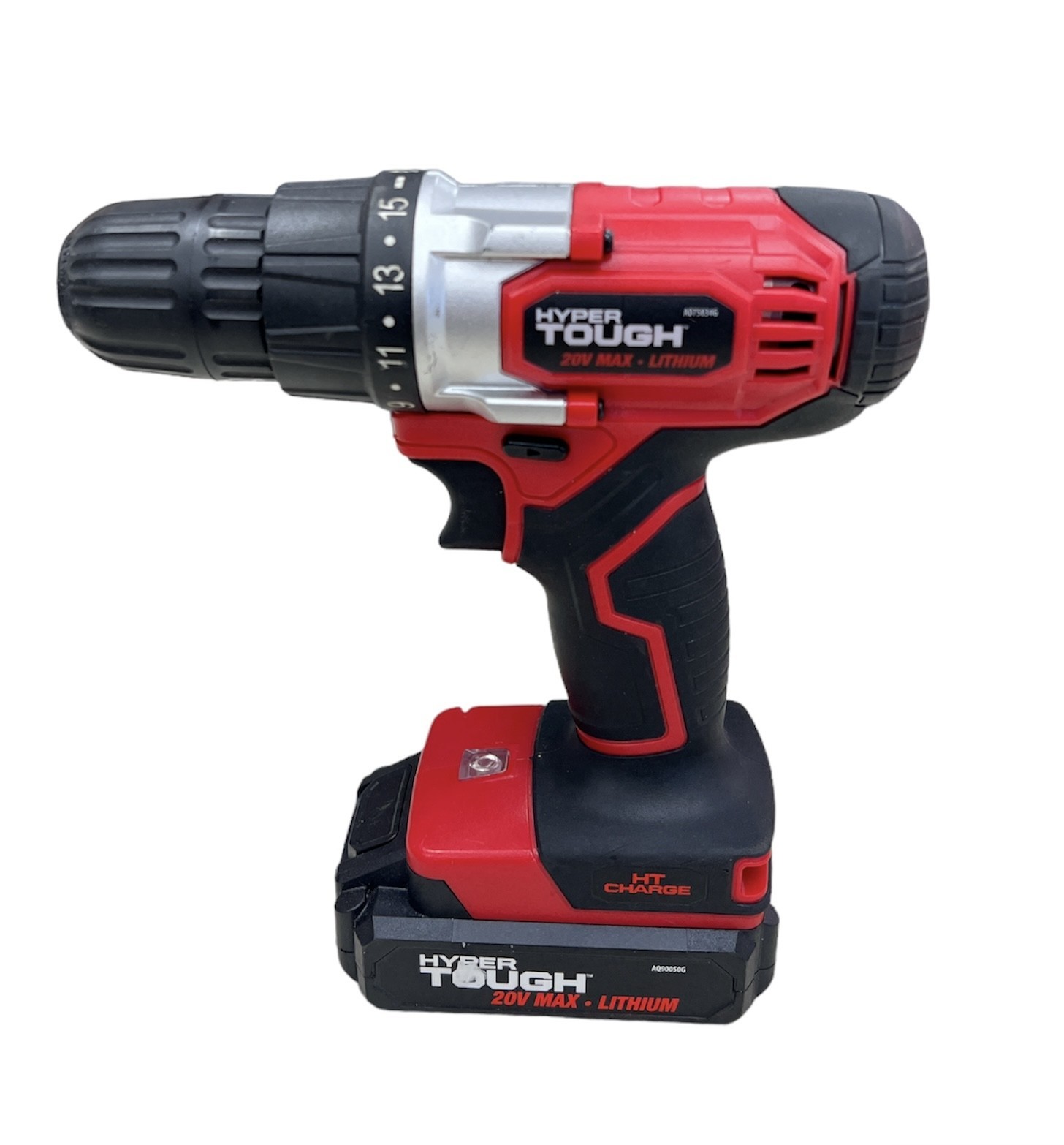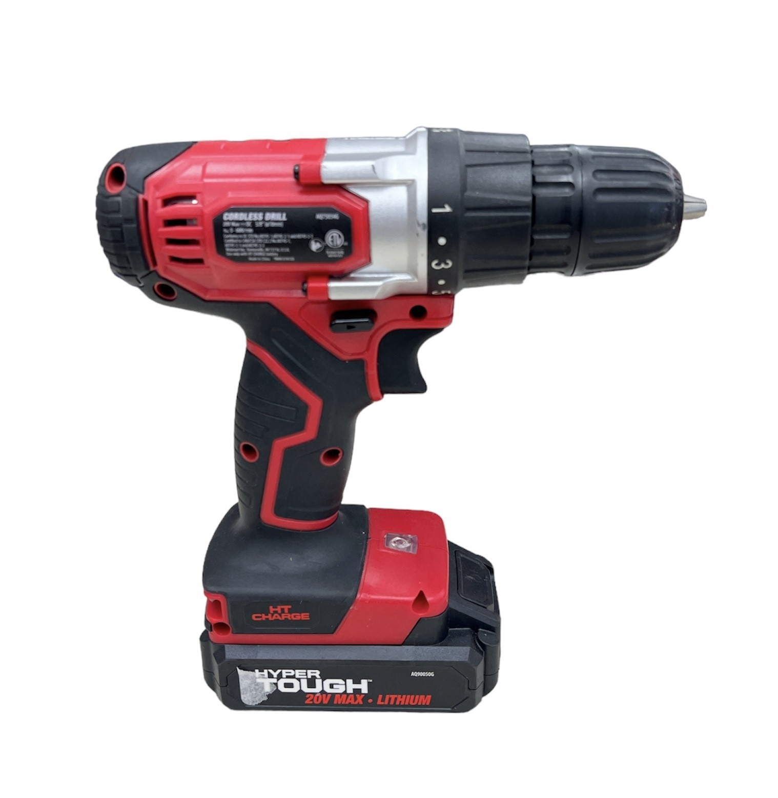 Category: Cordless hand toolsType: DrillBrand: Hyper ToughModel number: AQ75034GSize: 3/8"Color: RedPower source: BatteryBattery Included: yesVoltage: 20VDrive Size: 3/8Model name: noCase included: noCondition:UsedNotes: