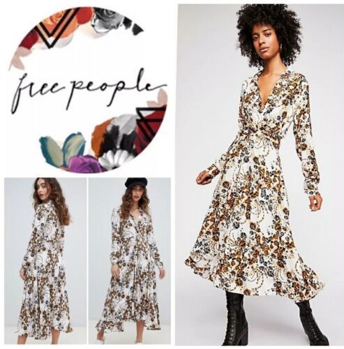 Free People Tough Love Floral Shirt Long Sleeve Midi Length Wrap Dress Size 2