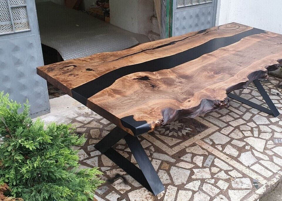 Black river epoxy dining table, live edge wooden table epoxy resin office table