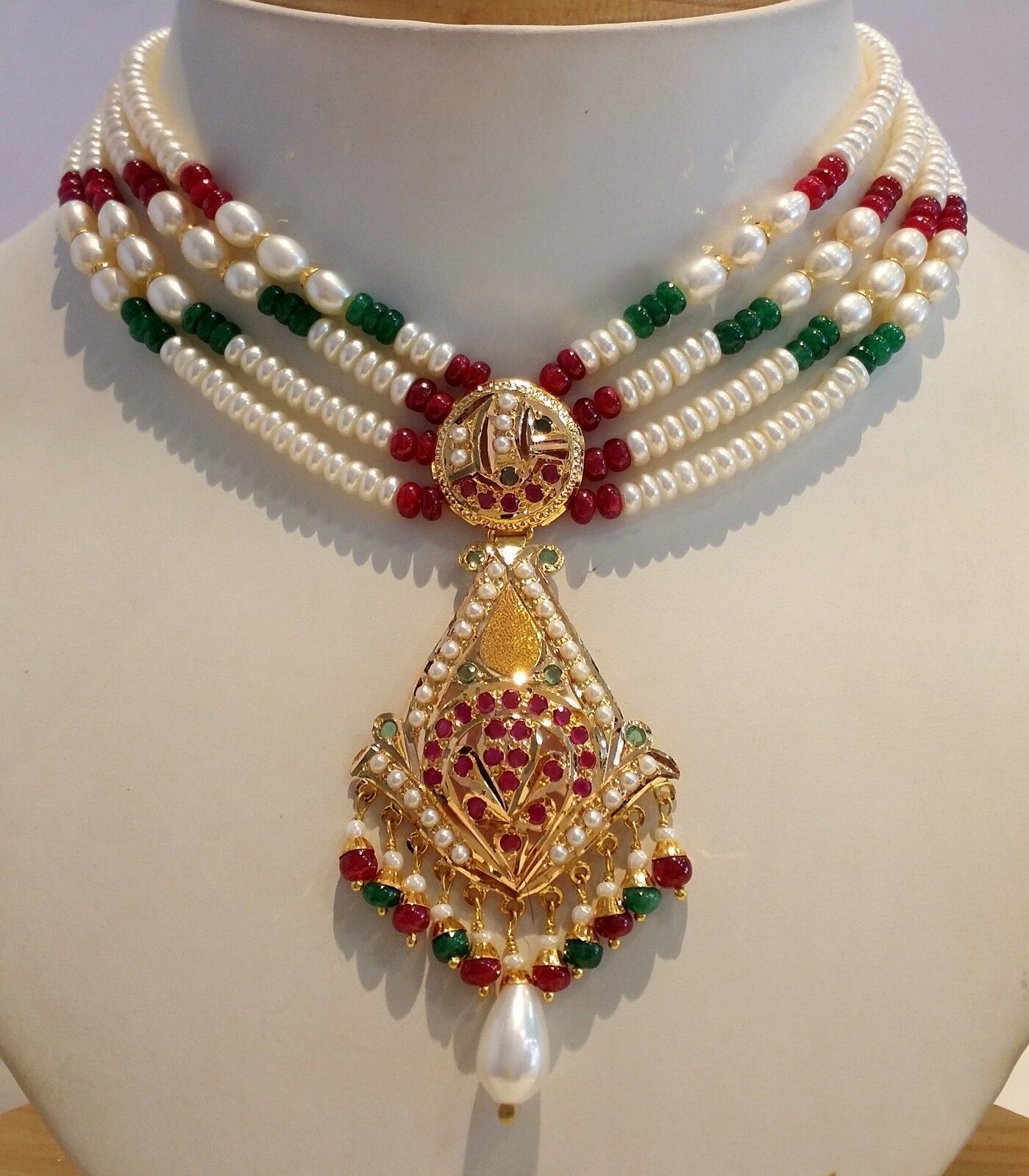 Real Ruby Emerald Pearls Studded Necklace and 48 similar items