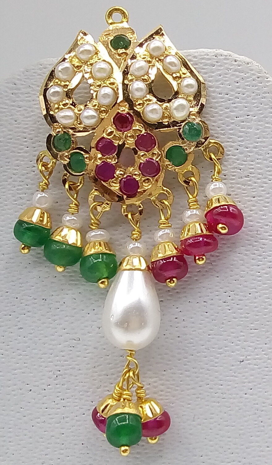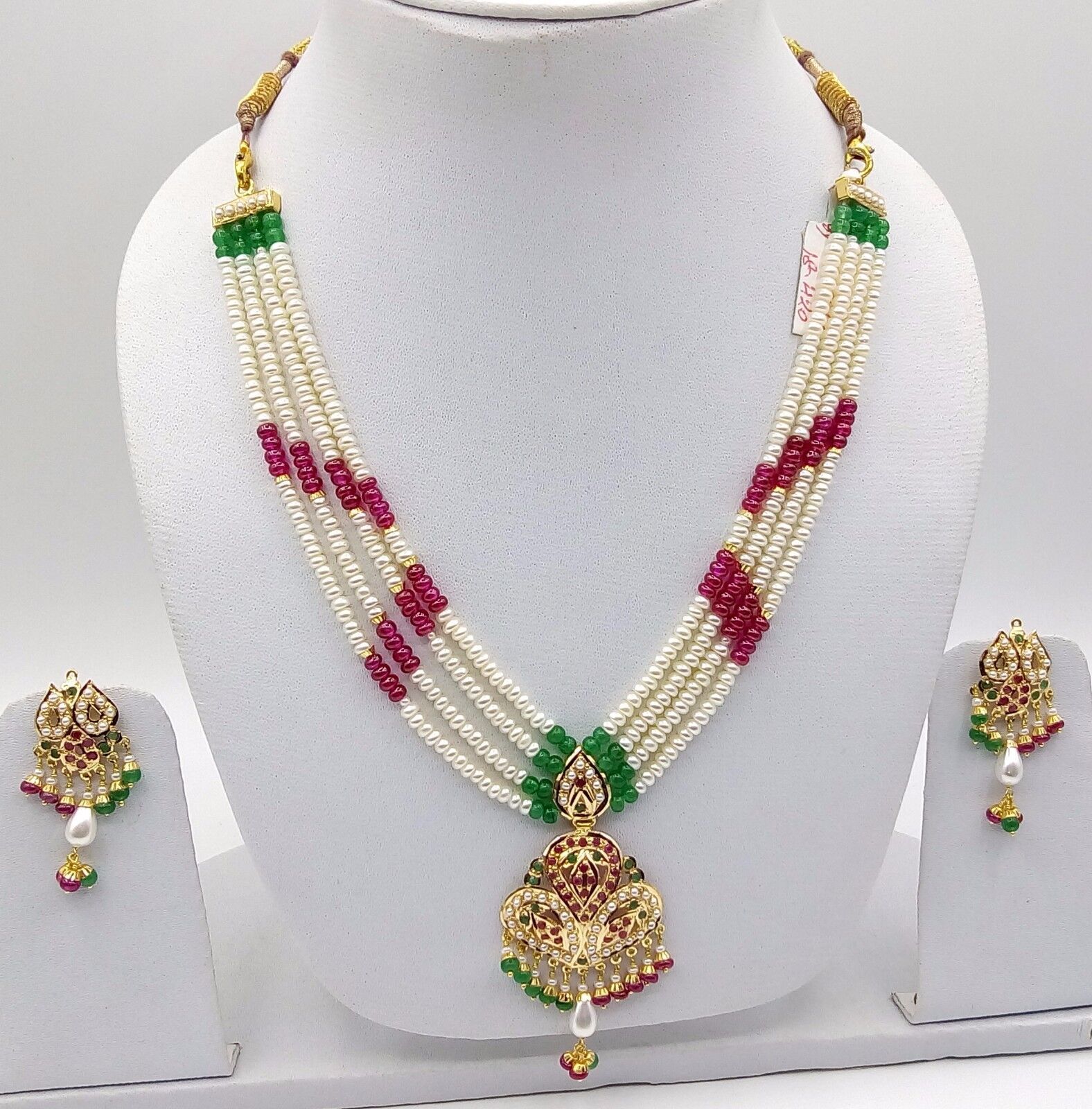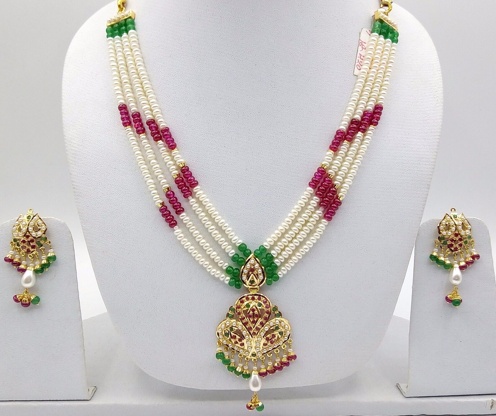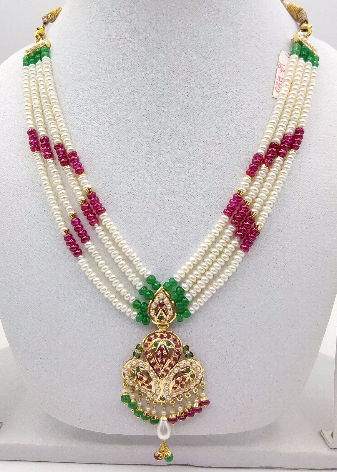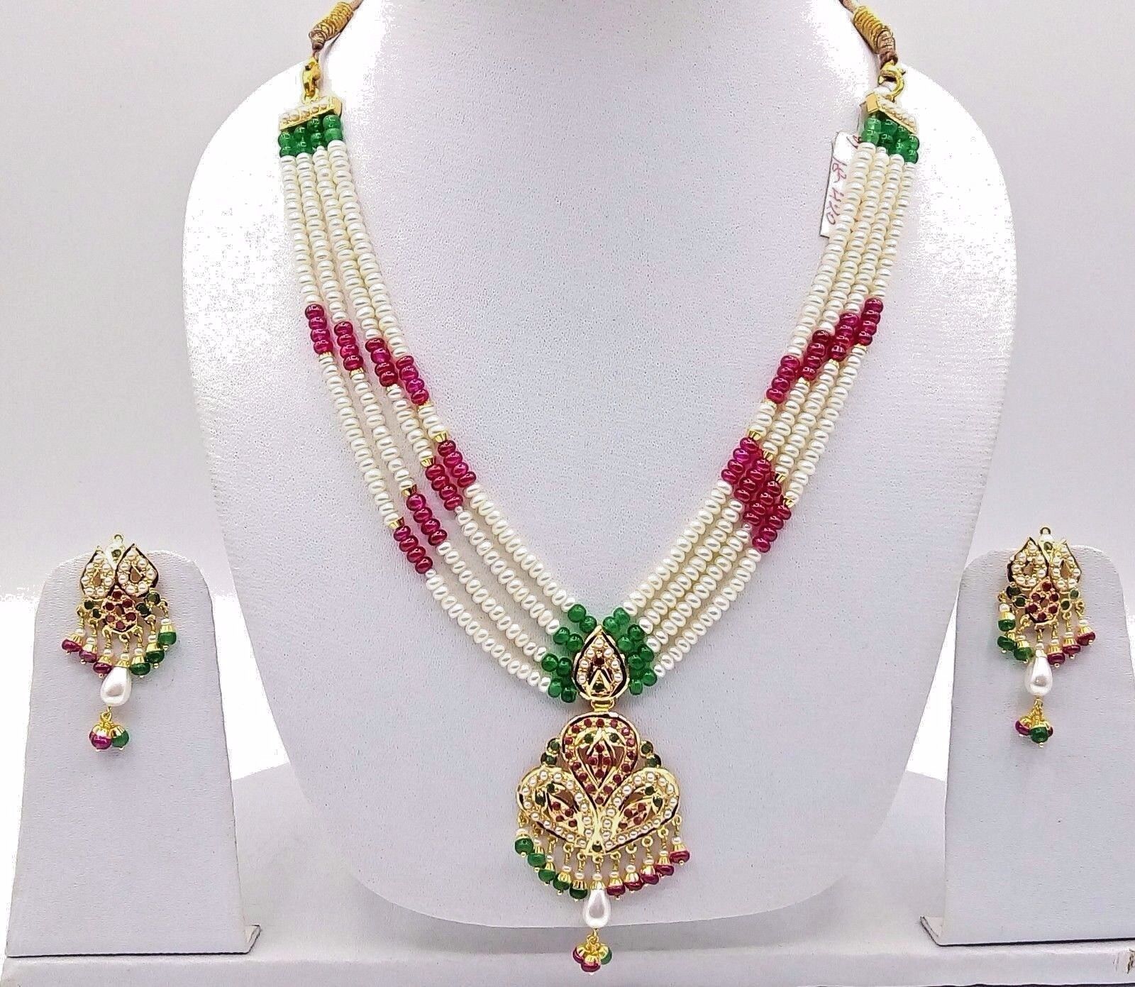 22CT 22K BRIDAL YELLOW GOLD PEARLS RUBY EMERALD SET NECKLACE INDIAN BOLLYWOOD