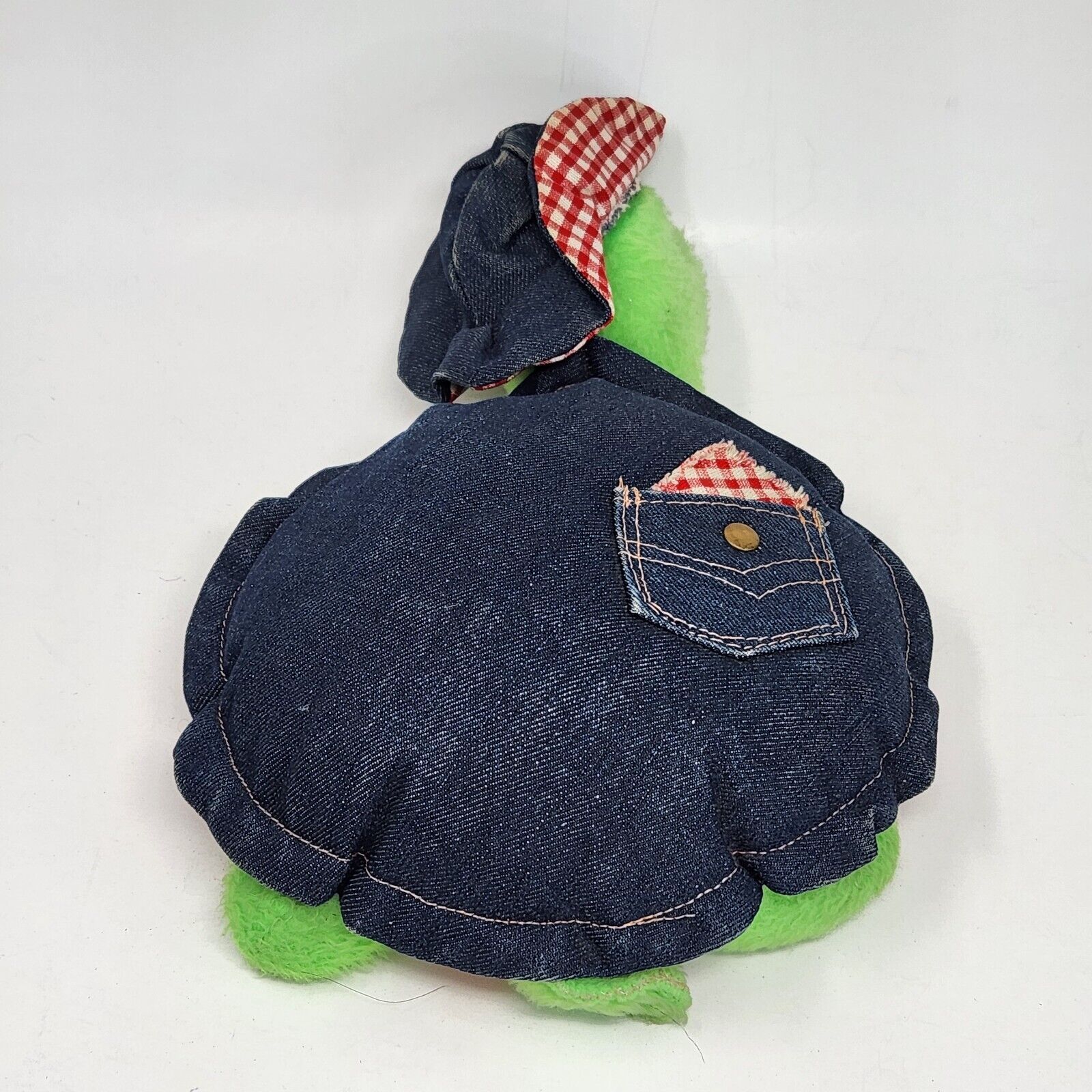 VINTAGE 1970's KNICKERBOCKER GREEN TURTLE WEARING JEANS STUFFED ANIMAL PLUSH TOY