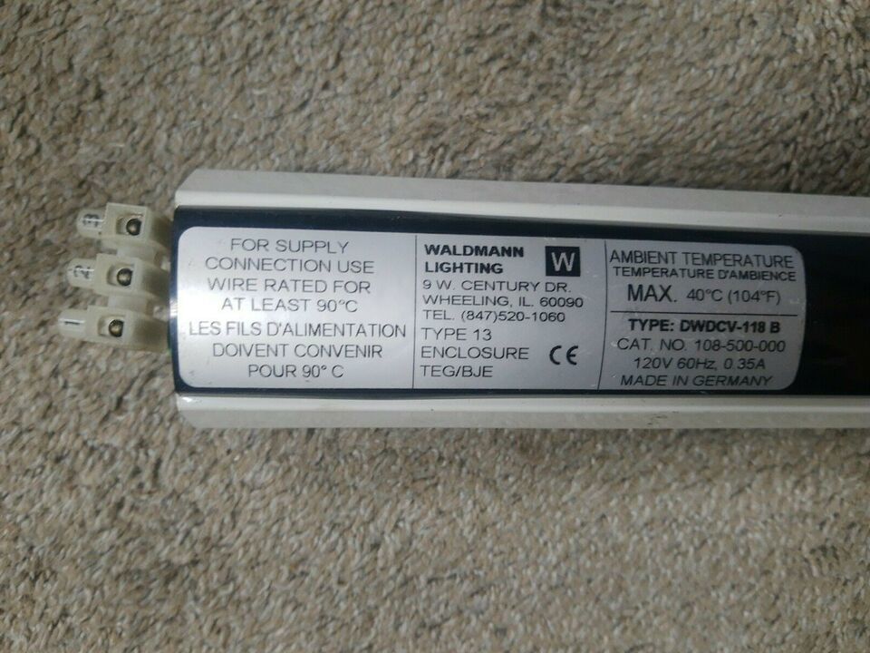 Waldmann Fluorescent Lighting Fixture w/ Robertson SS2P 120V 0.35A # DWDCV-118 B