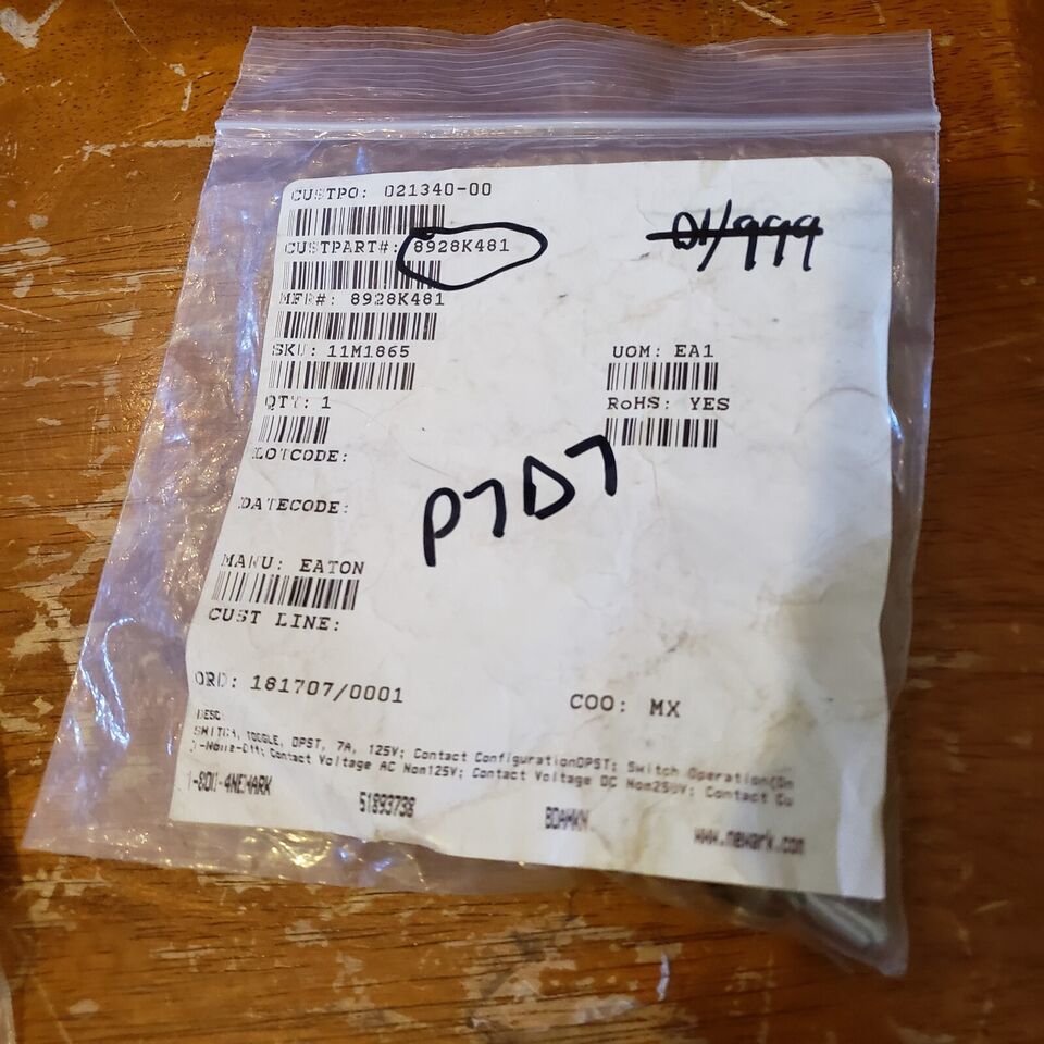 NEW RARE Eaton Toggle Switch ON OFF DPST 7A Panel Mount Kit # 8928k481