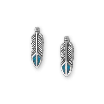 Oxidized Sterling Silver Turquoise Chip Inlay Feather Stud Earrings