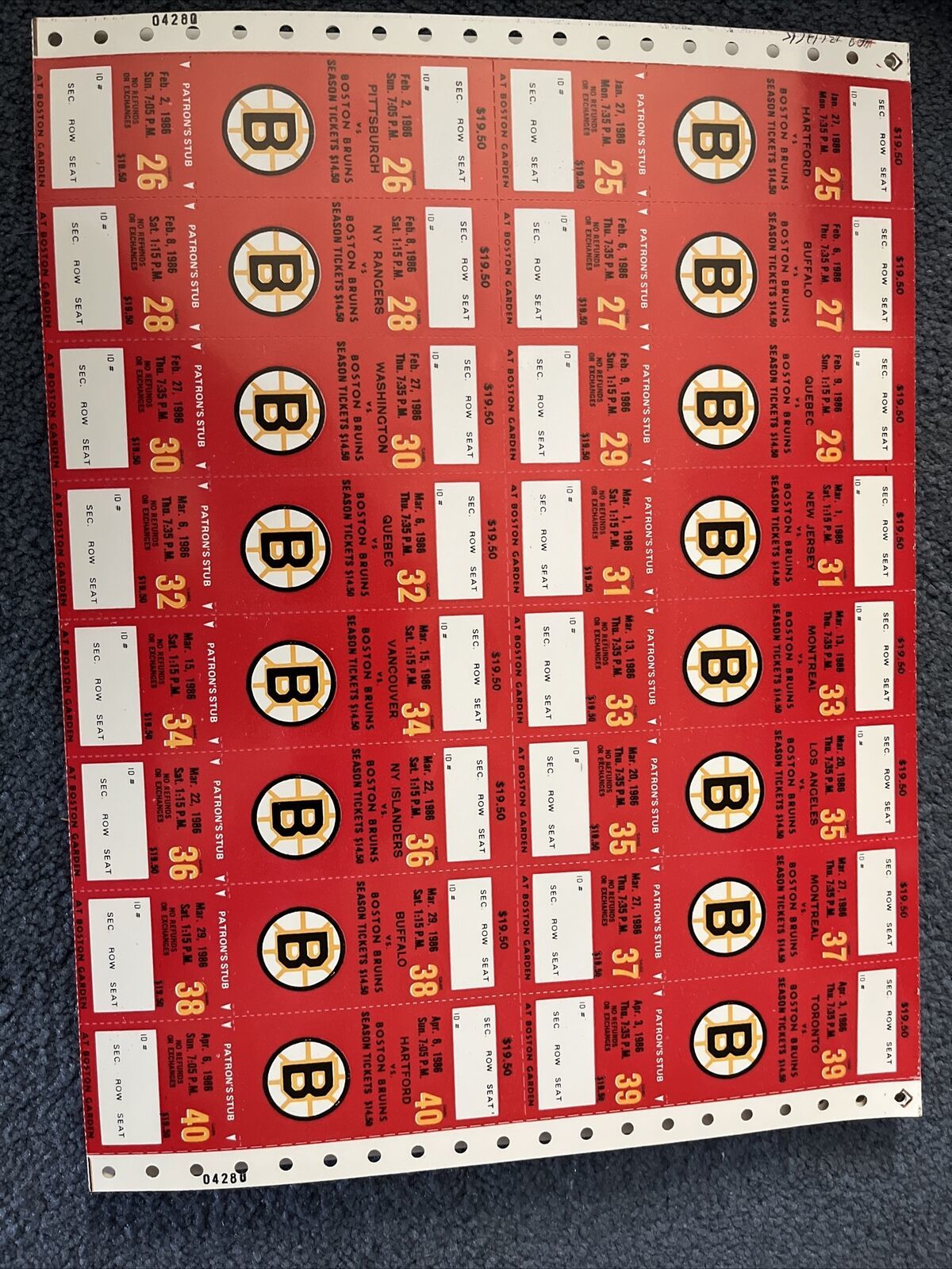 1985-86 Boston Bruins Season Souvenir/Collectible Tickets. Following games available: