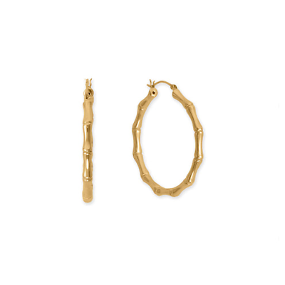 14k Yellow Gold Plated Sterling Silver 44mm Bamboo Hoop Earrings