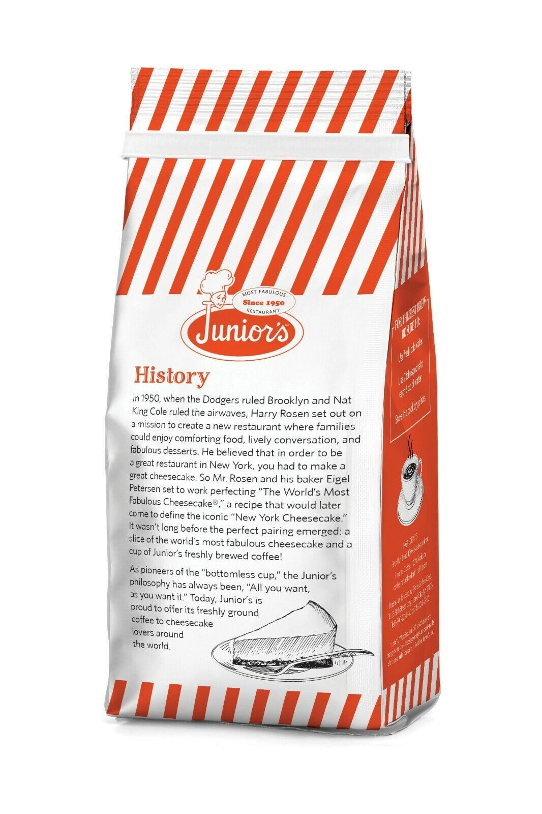 As pioneers of the "bottomless cup," the Junior's philosophy has always been, "All you want, as you want it." Today, Junior's is proud to offer its freshly ground coffee to cheesecake lovers around the world.