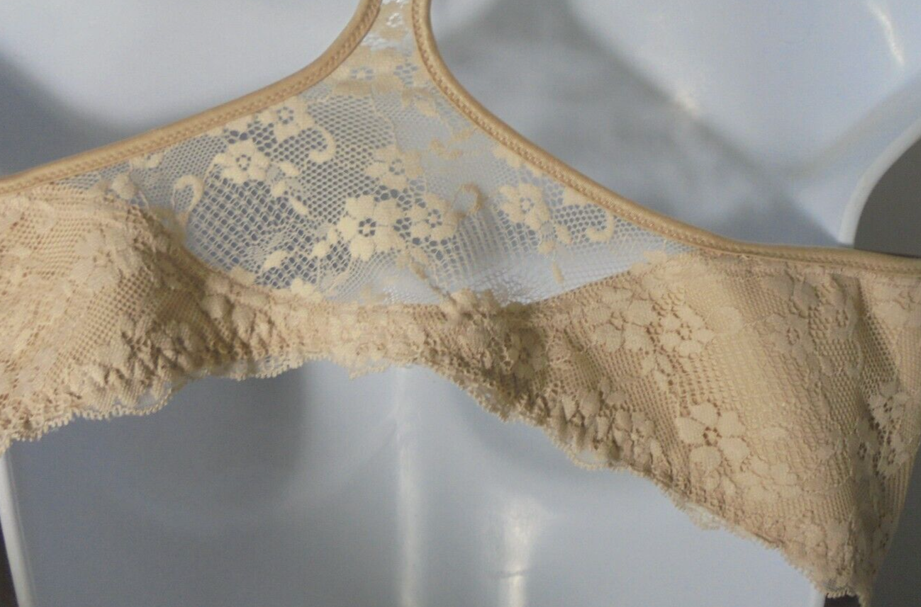 Description: Lovely animal print tan and beige bra with lace and adjustable straps. Padded.