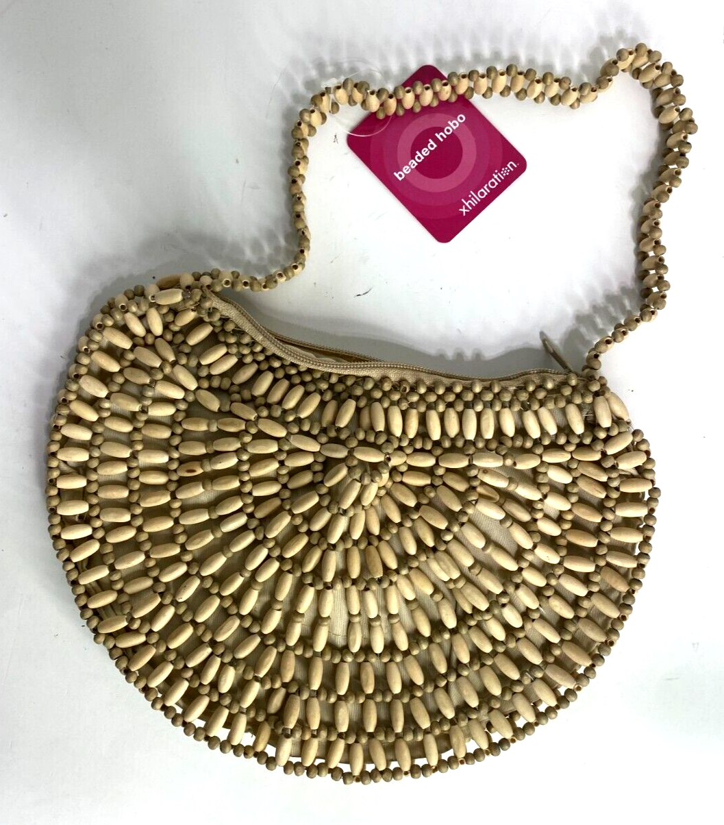 Xhilaration Beaded Hobo Shoulder Bag Natural Color Wood Bead Vintage 2001 Target