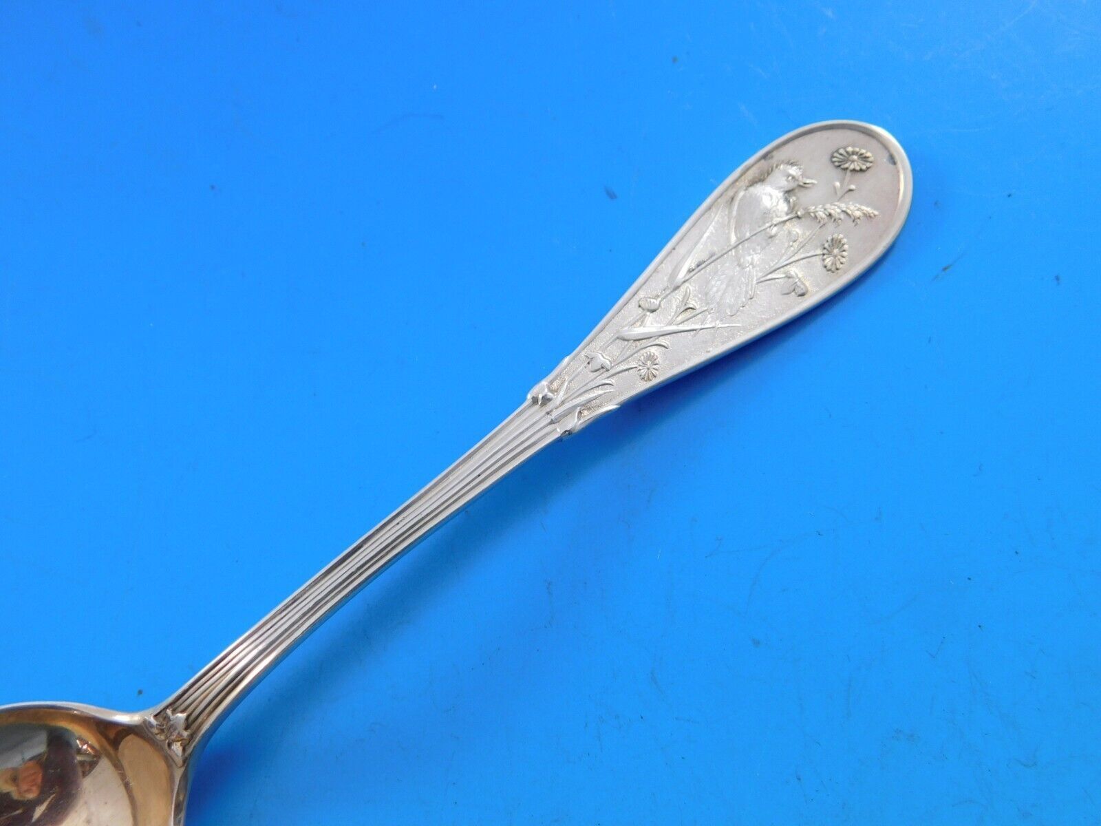 Beautiful sterling silver 4 O'Clock Spoon with Gold Washed Bowl (rose gold) 4 7/8" in the multi-motif pattern Japanese by Tiffany and Co. The handle of this piece features a Japonesque bird perched on a branch, surrounded by foliage. It is monogrammed on the reverse (monos vary) and is in excellent condition.