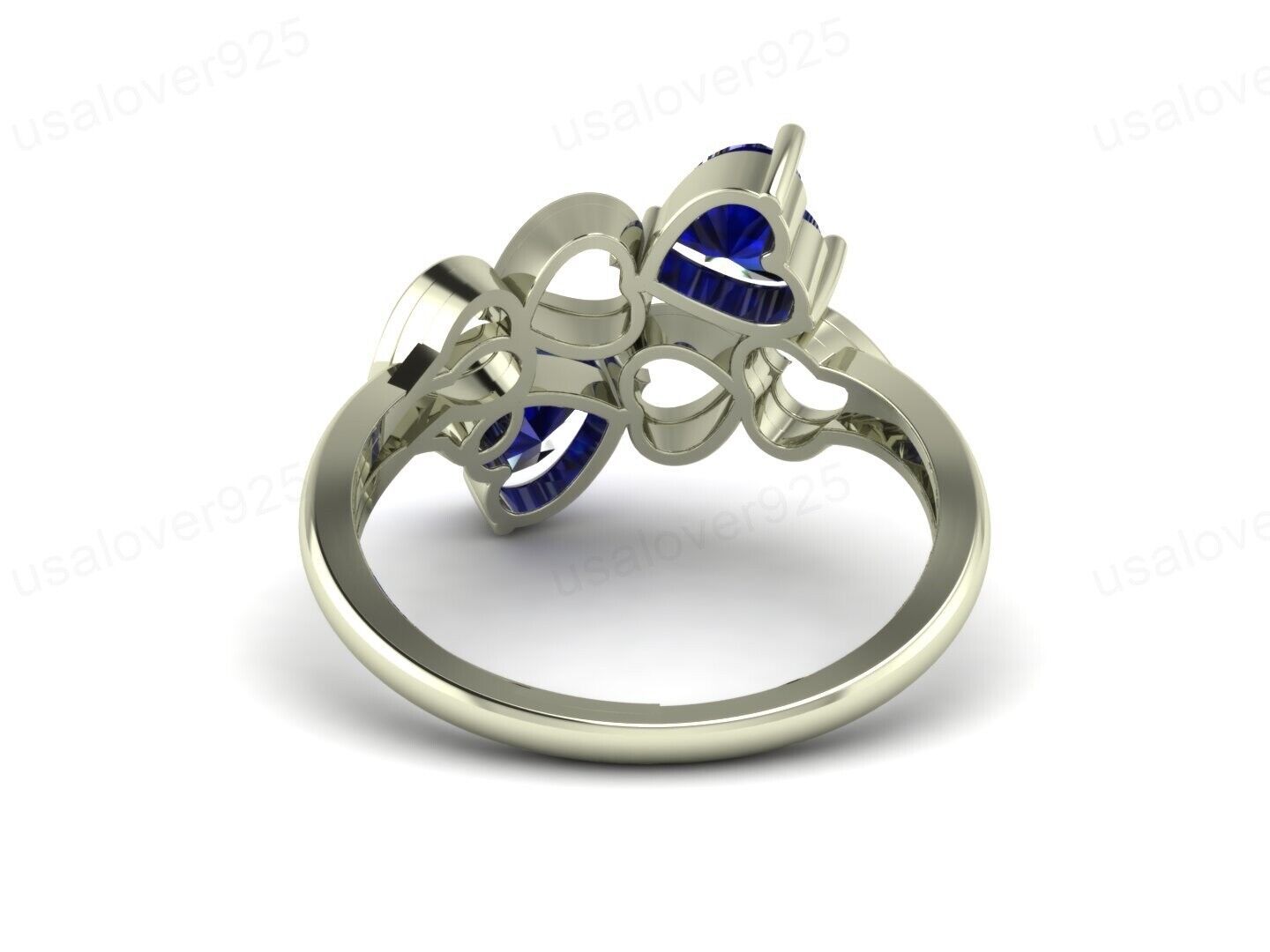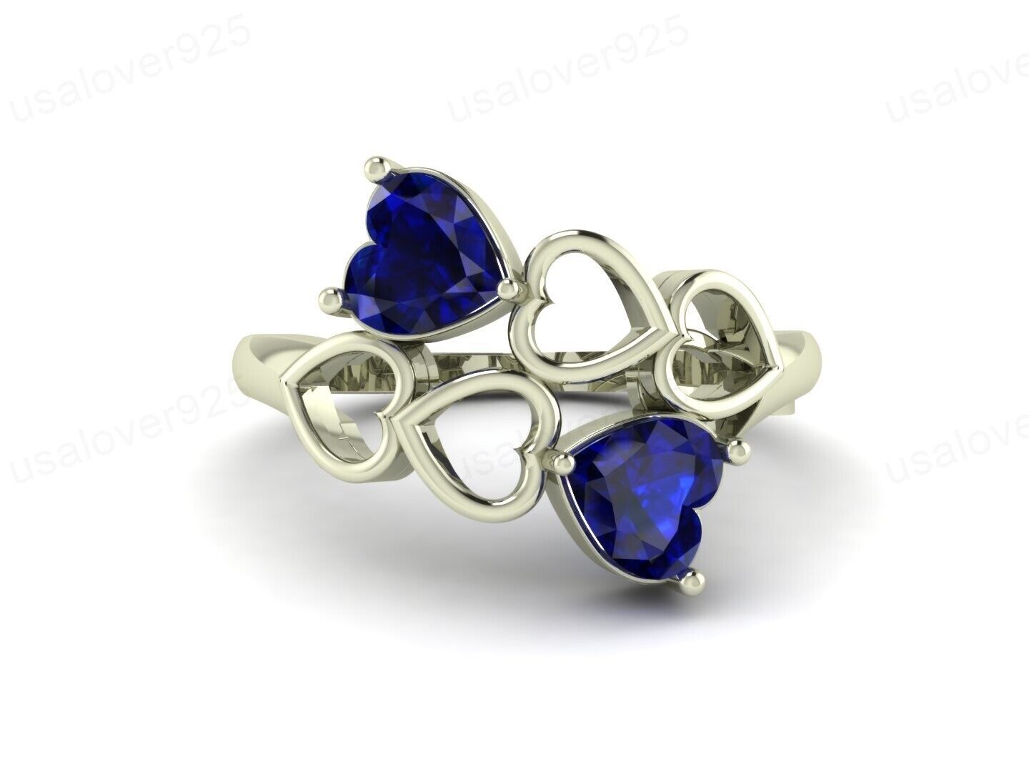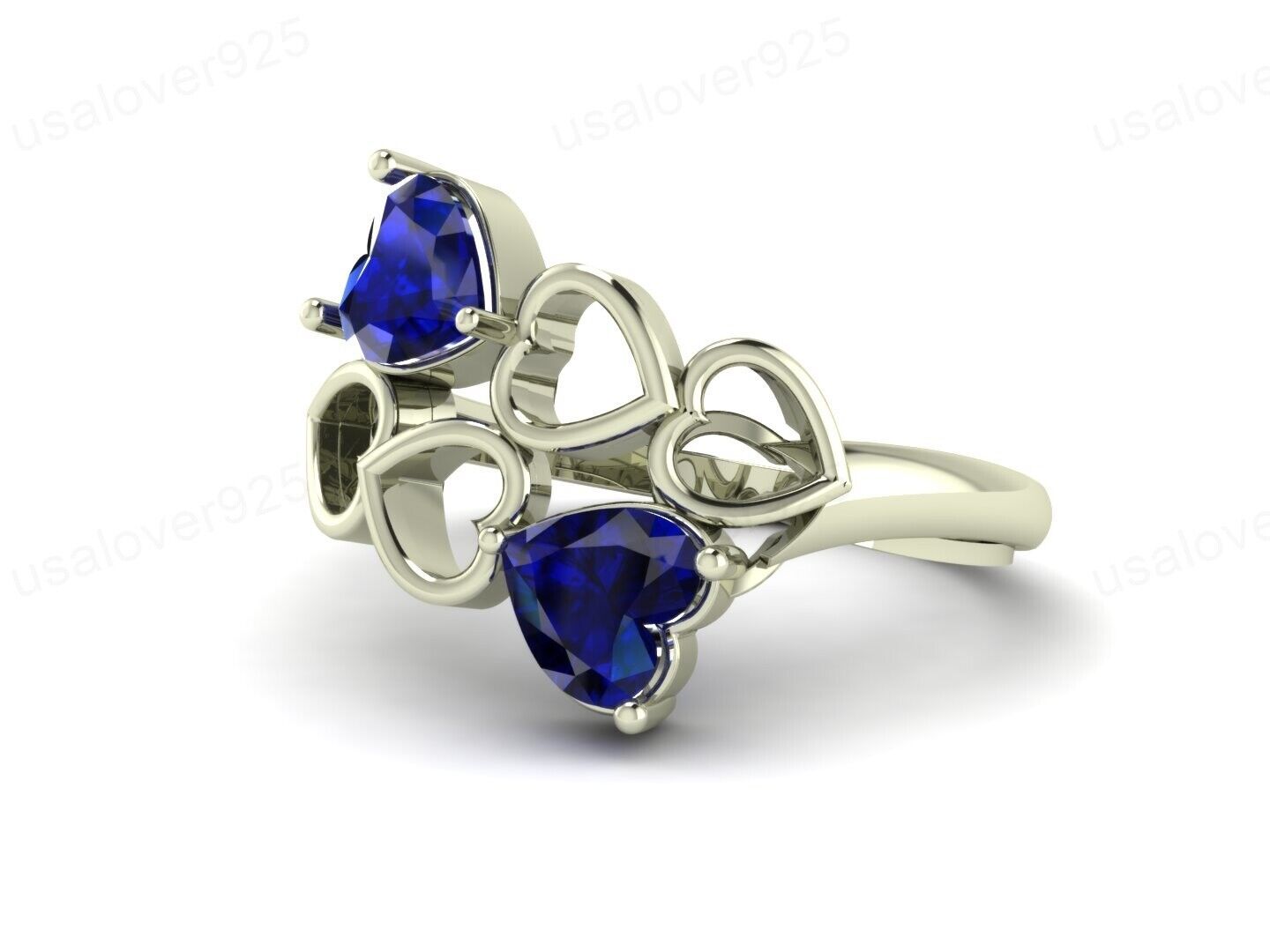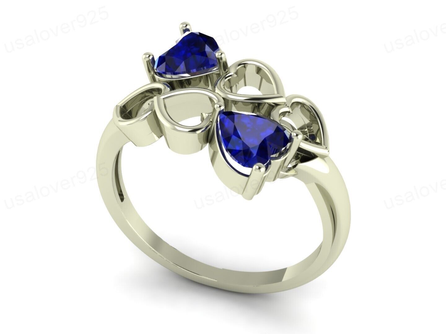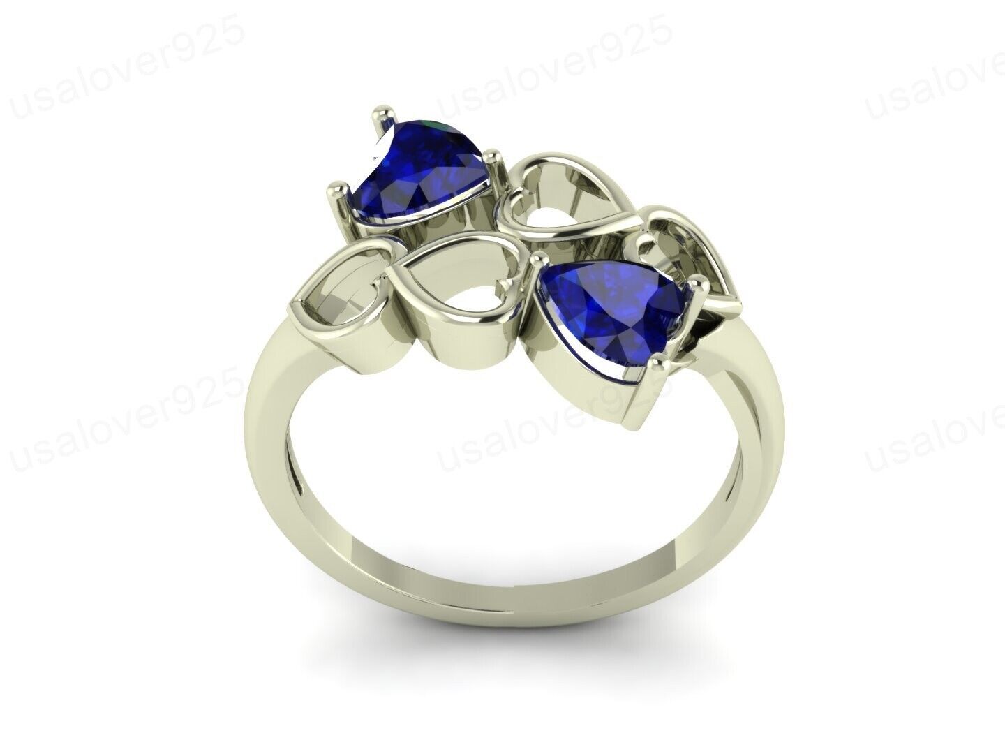 Blue Sapphire Heart Gemstone Handmade 925 Sterling Silver Women Ring Jewelry