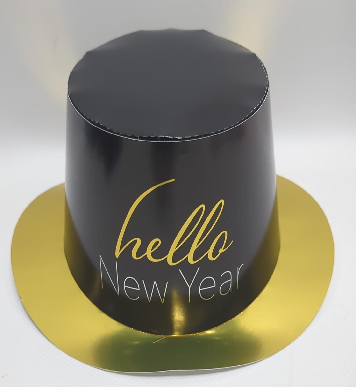 Beistle Hello New Year Paper Top Hat, Gold/Black, Age 14+