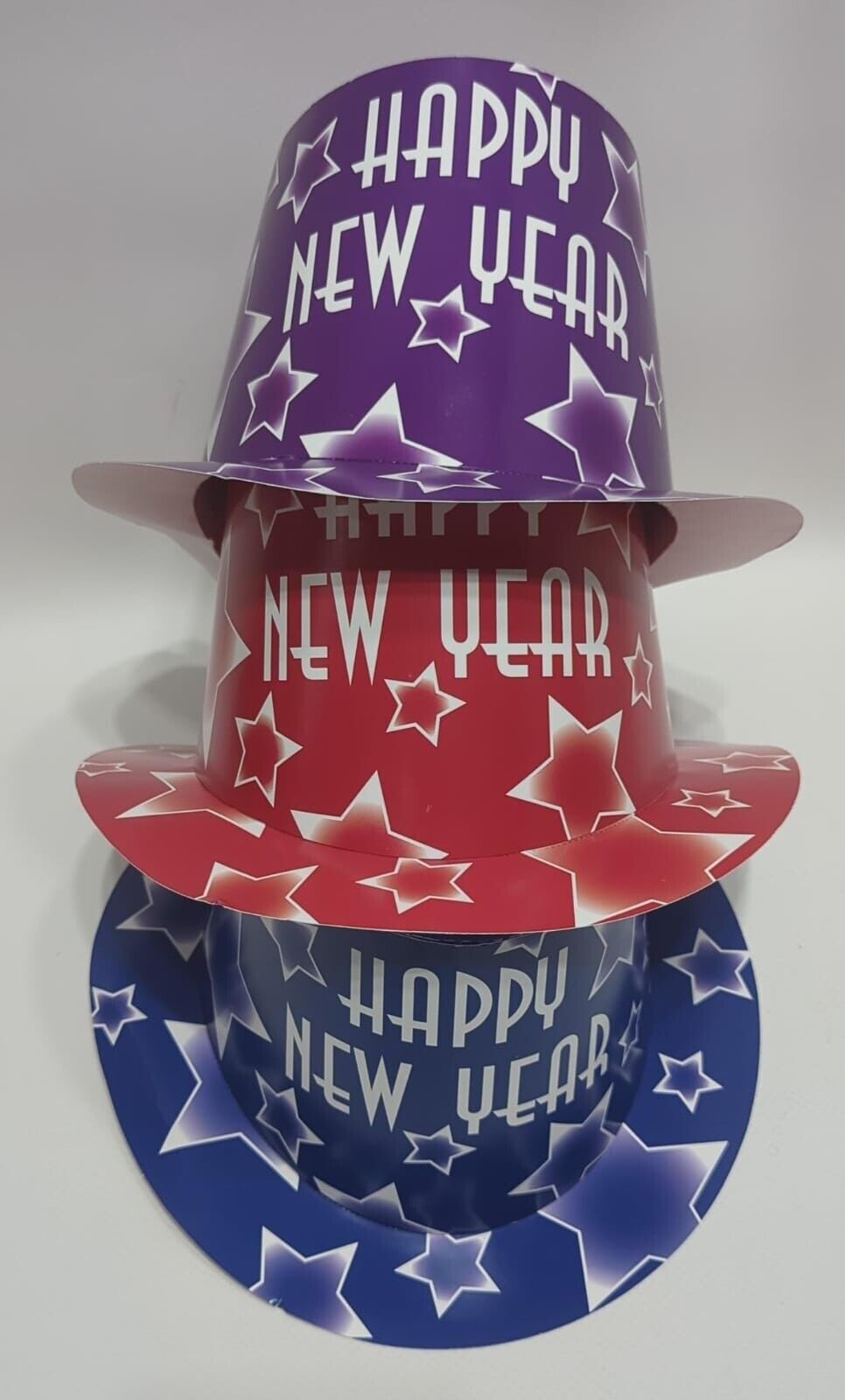 Lot of 3 Beistle Happy New Year Paper Top Hat, Assorted Colors, Age 14+