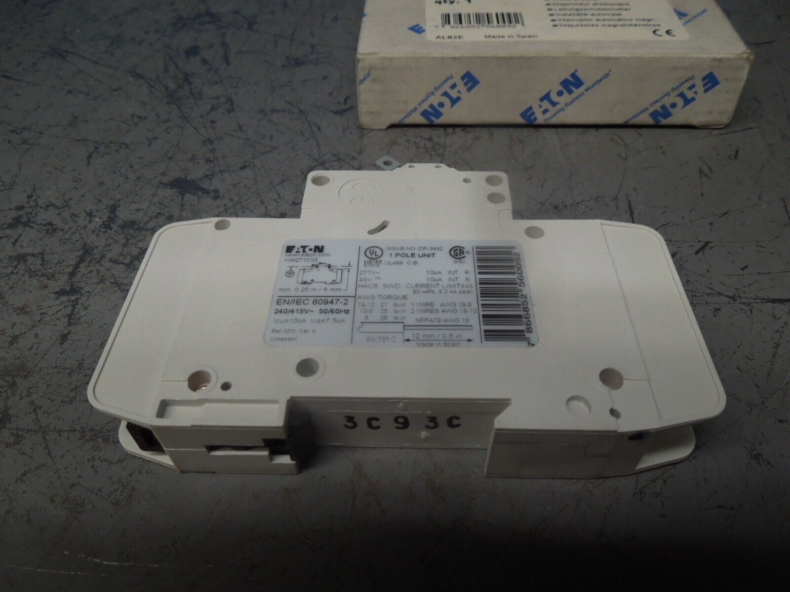 Eaton WMZT1C03 3A 1P 277VAC 48VDC Type C 10kA Circuit Breaker New Surplus in Box