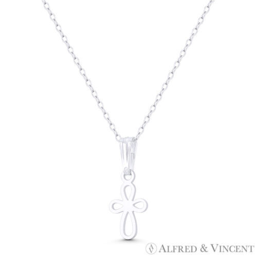 Tiny Flared Modern Christian Cross Cutout Pendant in Italy .925 Sterling Silver