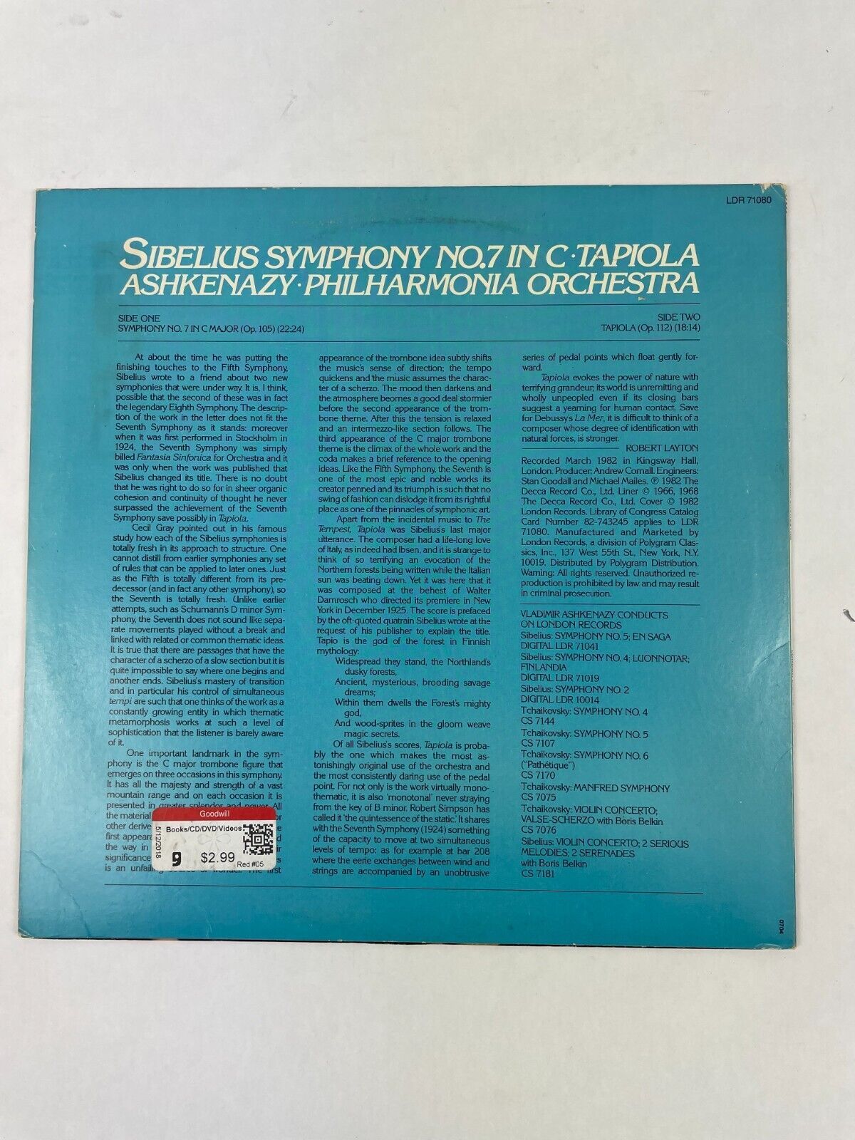 -Featuring : Sibelkis Symphony No 7 In C Tapiola Ashkenazy Philharmonia Orchestra Vinyl Record