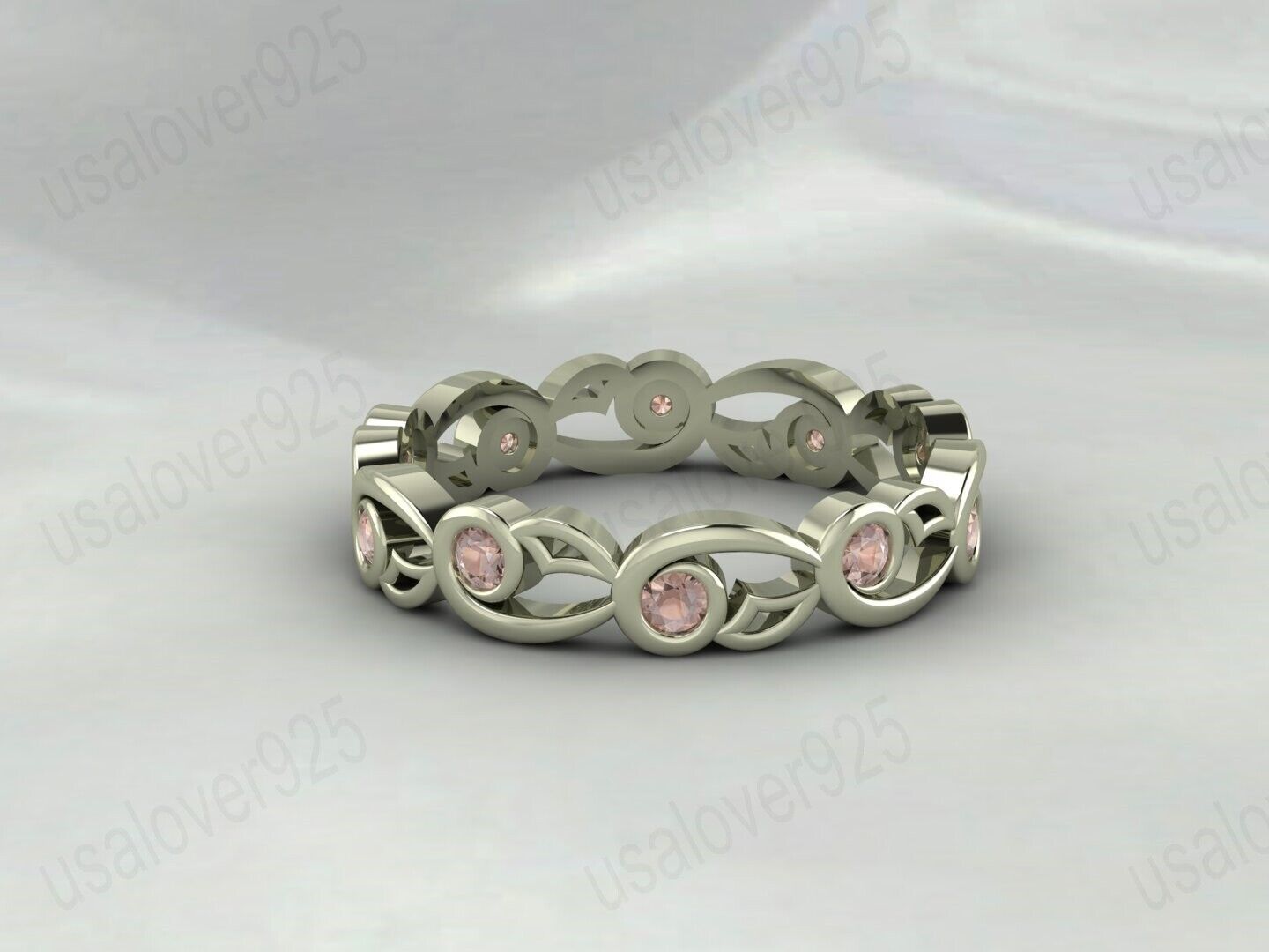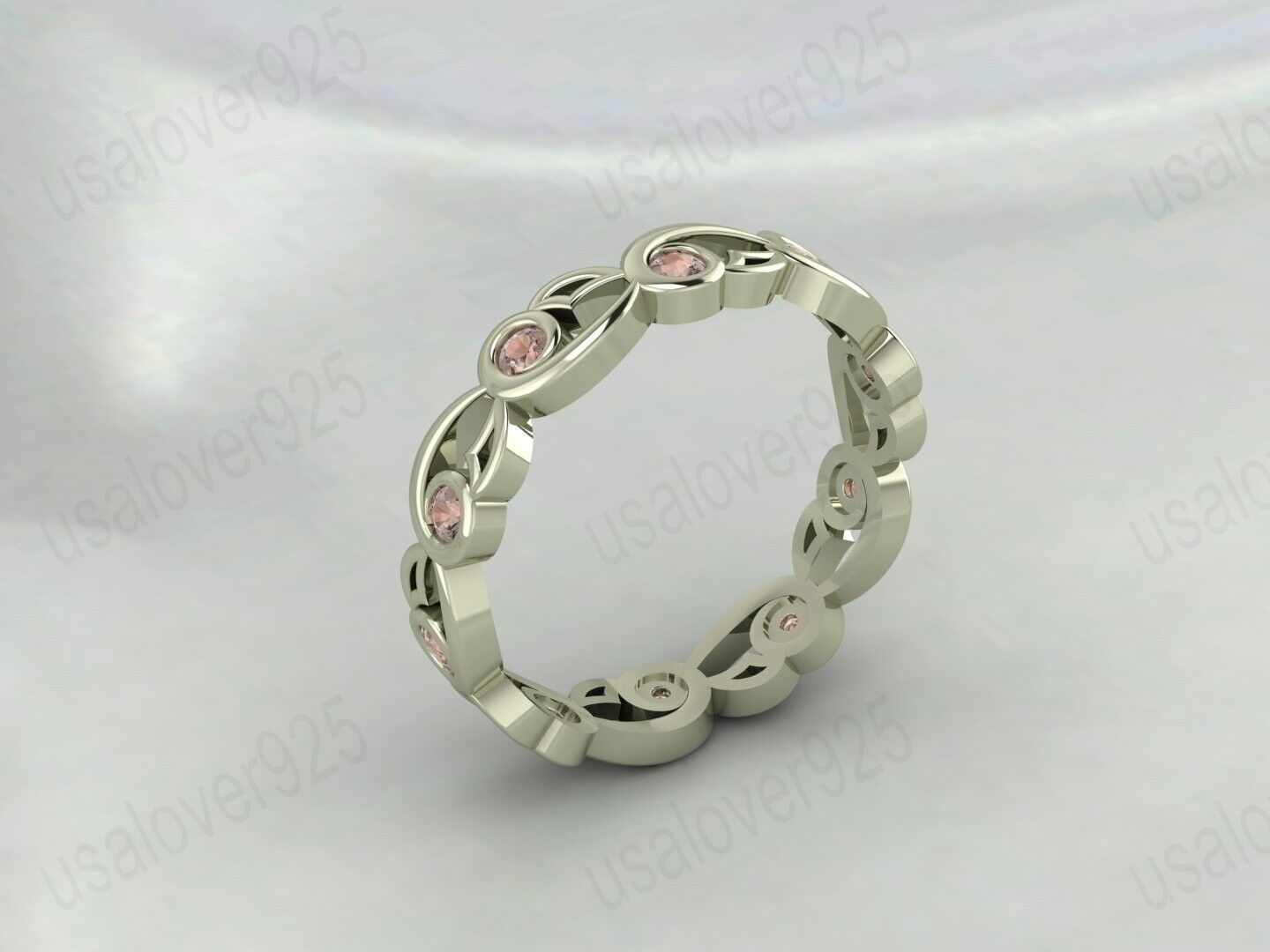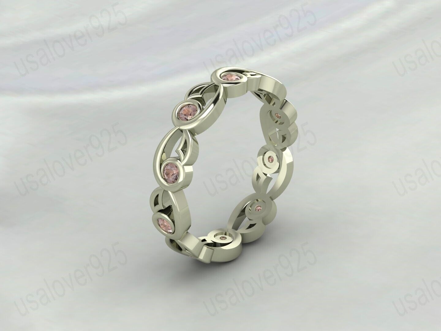 Morganite Round Gemstone Sterling Silver Full Eternity Wedding Band Ring Jewelry