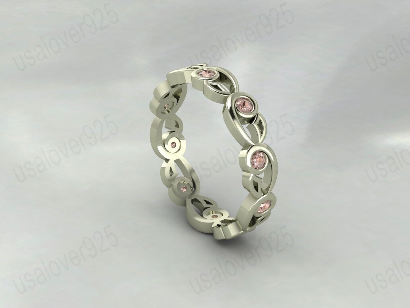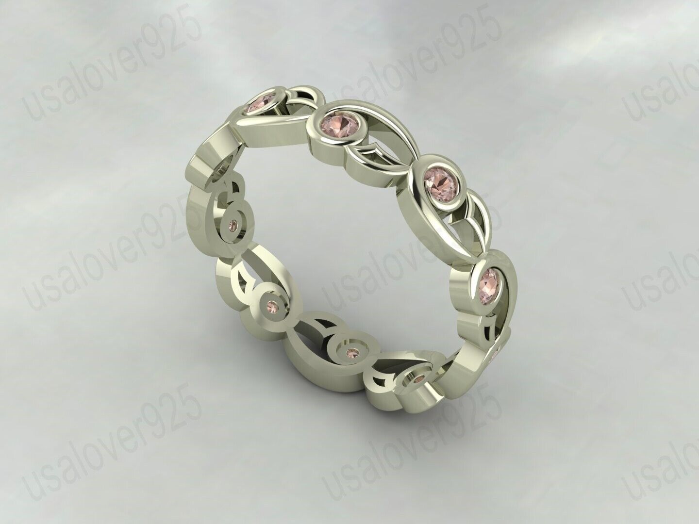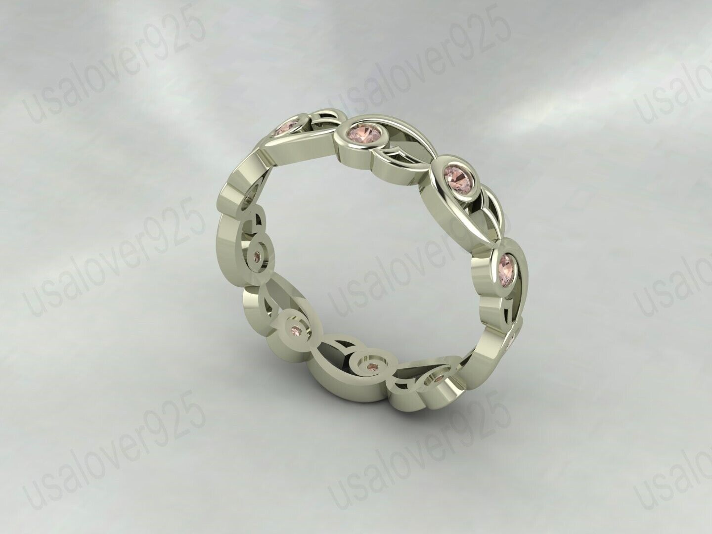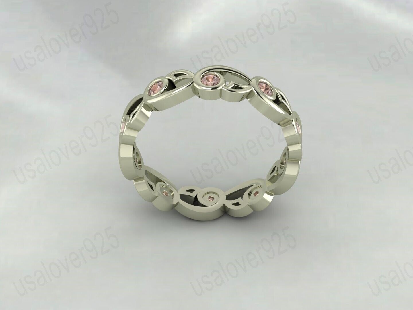 Morganite Round Gemstone Sterling Silver Full Eternity Wedding Band Ring Jewelry